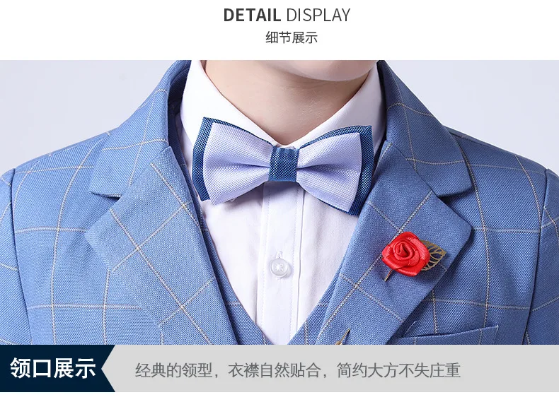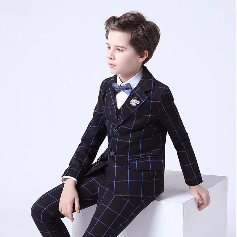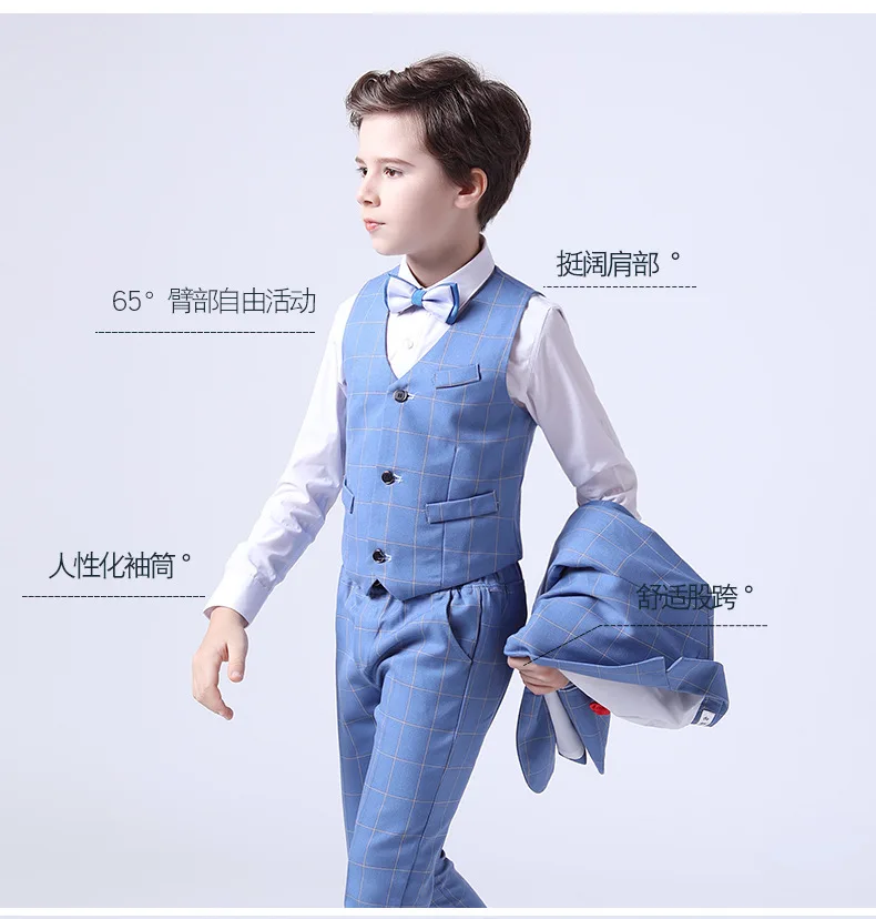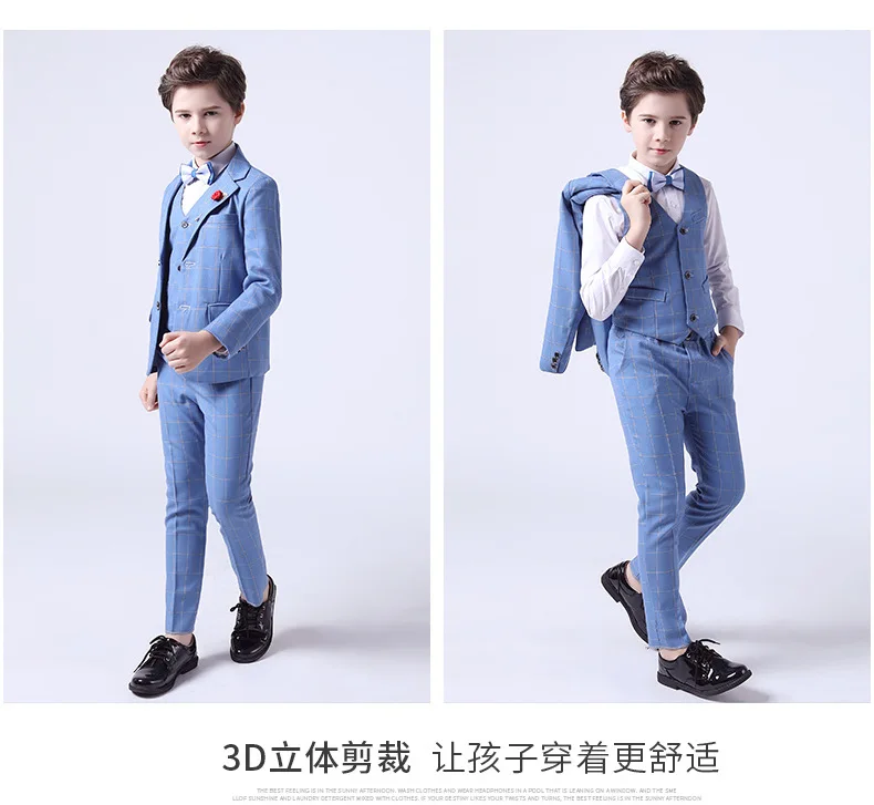 Строгий Детский костюм в клетку, весенне-осенний костюм с цветочным принтом для мальчиков на свадьбу детский Блейзер, жилет, штаны, одежда