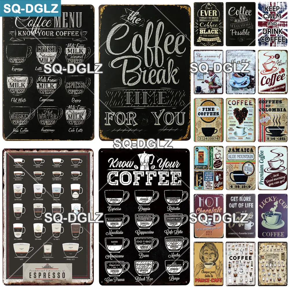 SQ-DGLZ Кофе меню металлический знак Винтаж металлическая табличка декор для Паб Бар Настенный декор перерыв Кофе наклейки в ретро стиле ретро кафе плакат