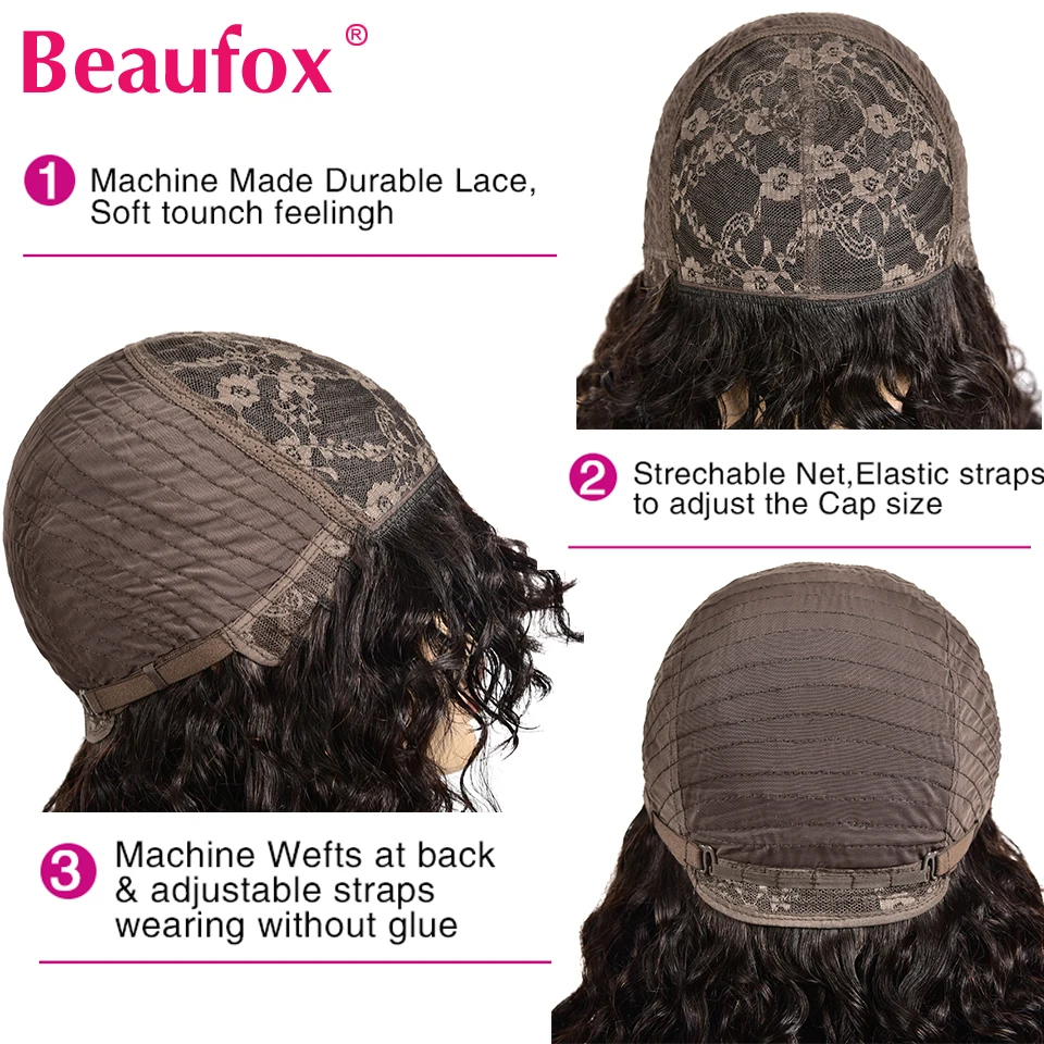Парики для чернокожих женщин Beaufox, волнистые парики из малазийских натуральных волос, без клея, полностью машинное изготовление