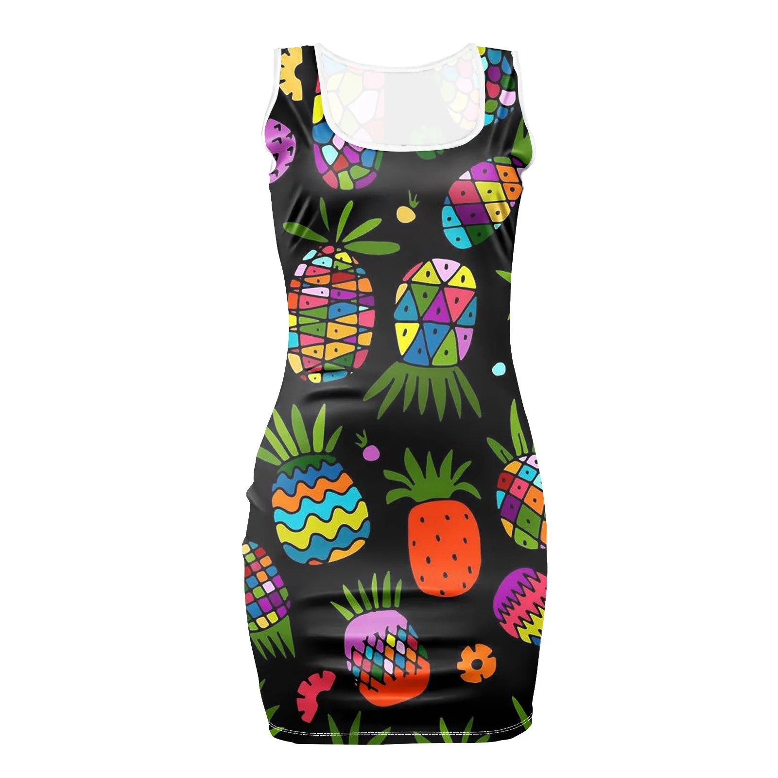 HYCOOL женские платья для малышей с изображением в виде ананаса Футболка с принтом Дамская Мода Вечерние элегантная повседневная одежда квадратный воротник сексуальная одежда, Новое поступление