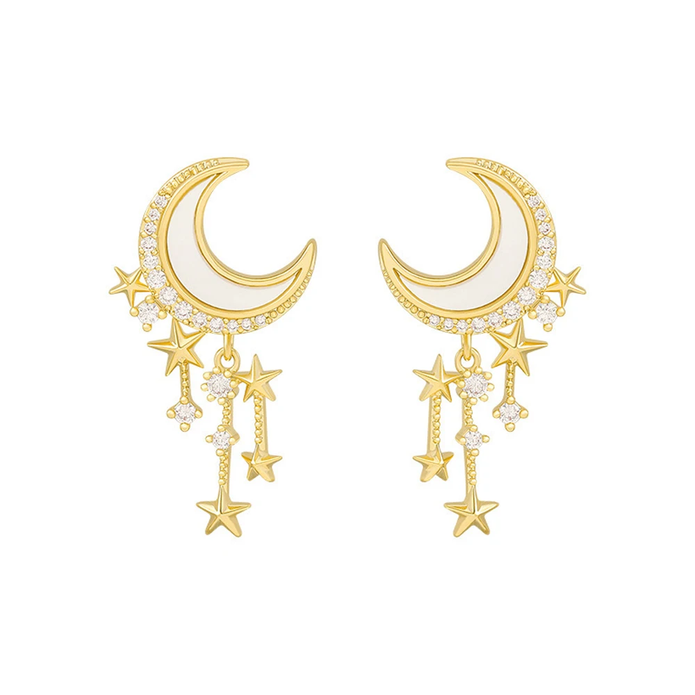 Женские серьги с Луной и звездой, элегантные и изысканные серьги, с...