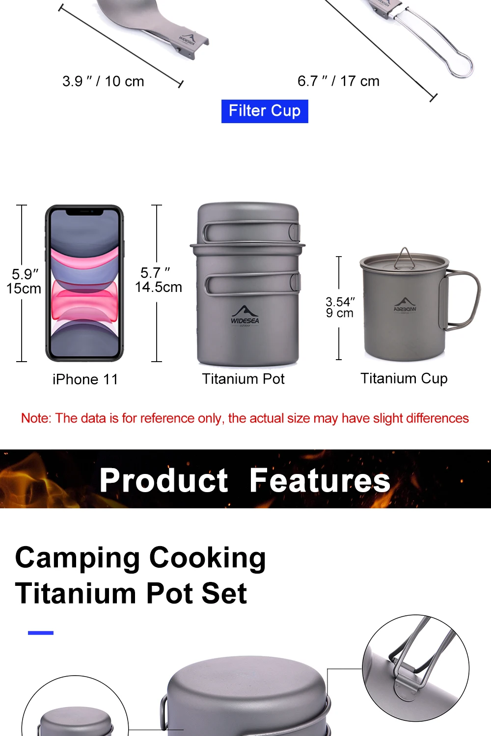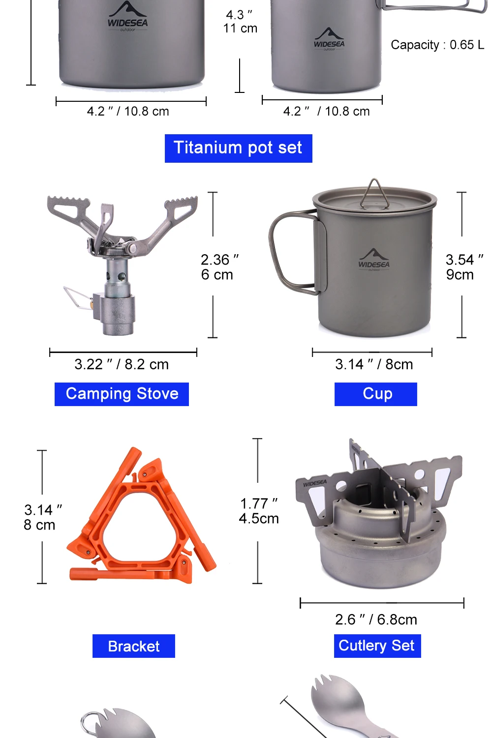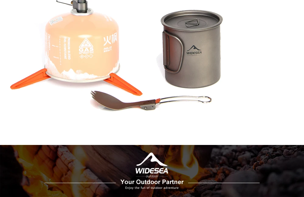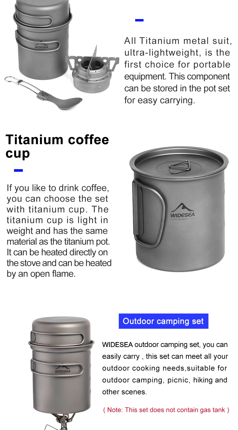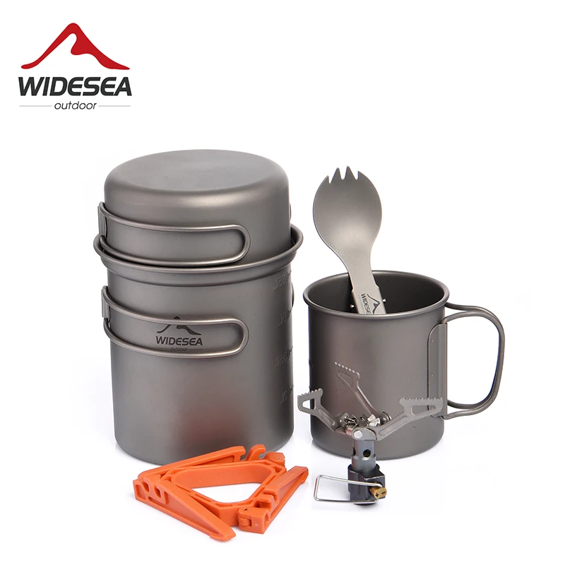 Набор посуды из титана для кемпинга, газовая горелка, ульсветильник, складная ложка