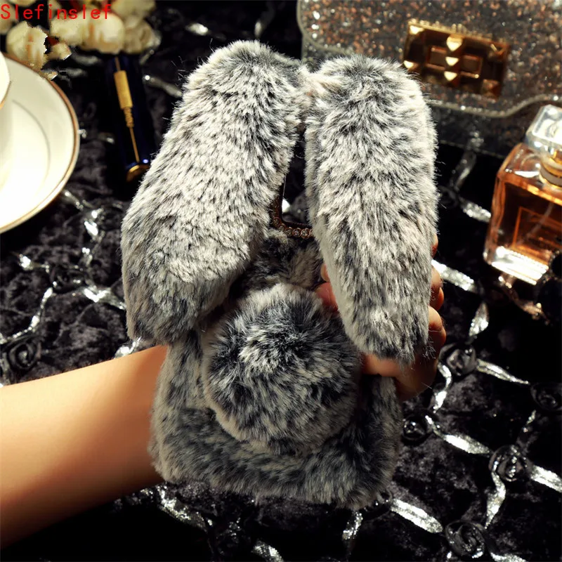 Теплые плюшевые чехлы с кроличьим мехом и бриллиантами для телефоно...