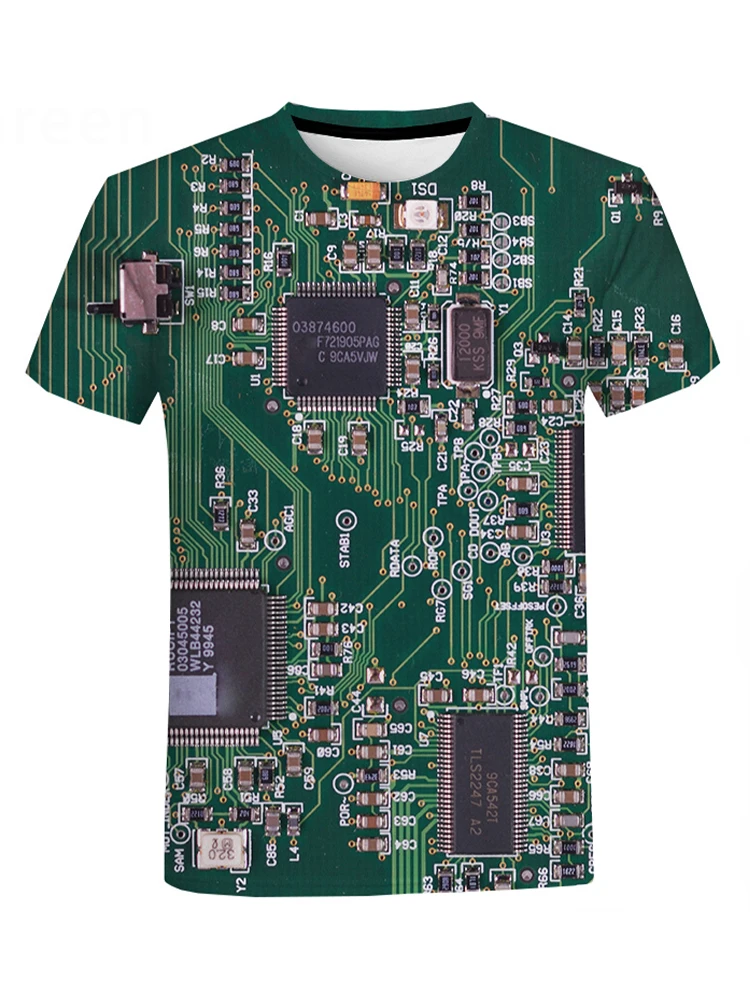 Футболка с электронным чипом в стиле хип-хоп для мужчин и женщин, футболка оверсайз с 3D-принтом машины, Стильная летняя футболка в стиле Хара...