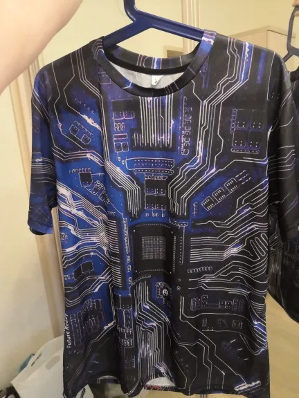 Принт хороший, но майка чистая синтетика, у меня размер 56 брал 5XL на мне сидит хорошо. Продавец отправил заказ быстро.