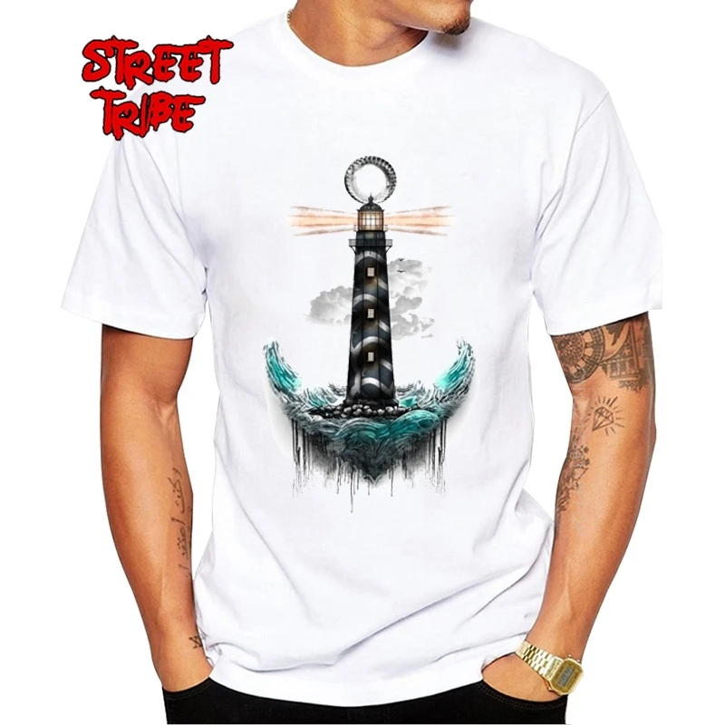 Винтажная Мужская футболка с изображением маяка, в стиле хипстера Сейлор путь, топы с круглым вырезом, мужские футболки в стиле гиков, уникальный подарок, одежда