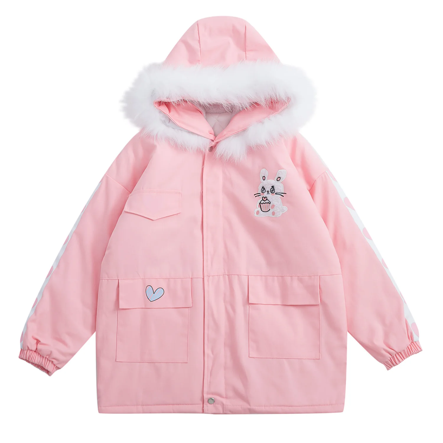 Женское зимнее длинное пальто Merry Pretty, розовое толстое пальто с капюшоном, в японском стиле, оверсайз