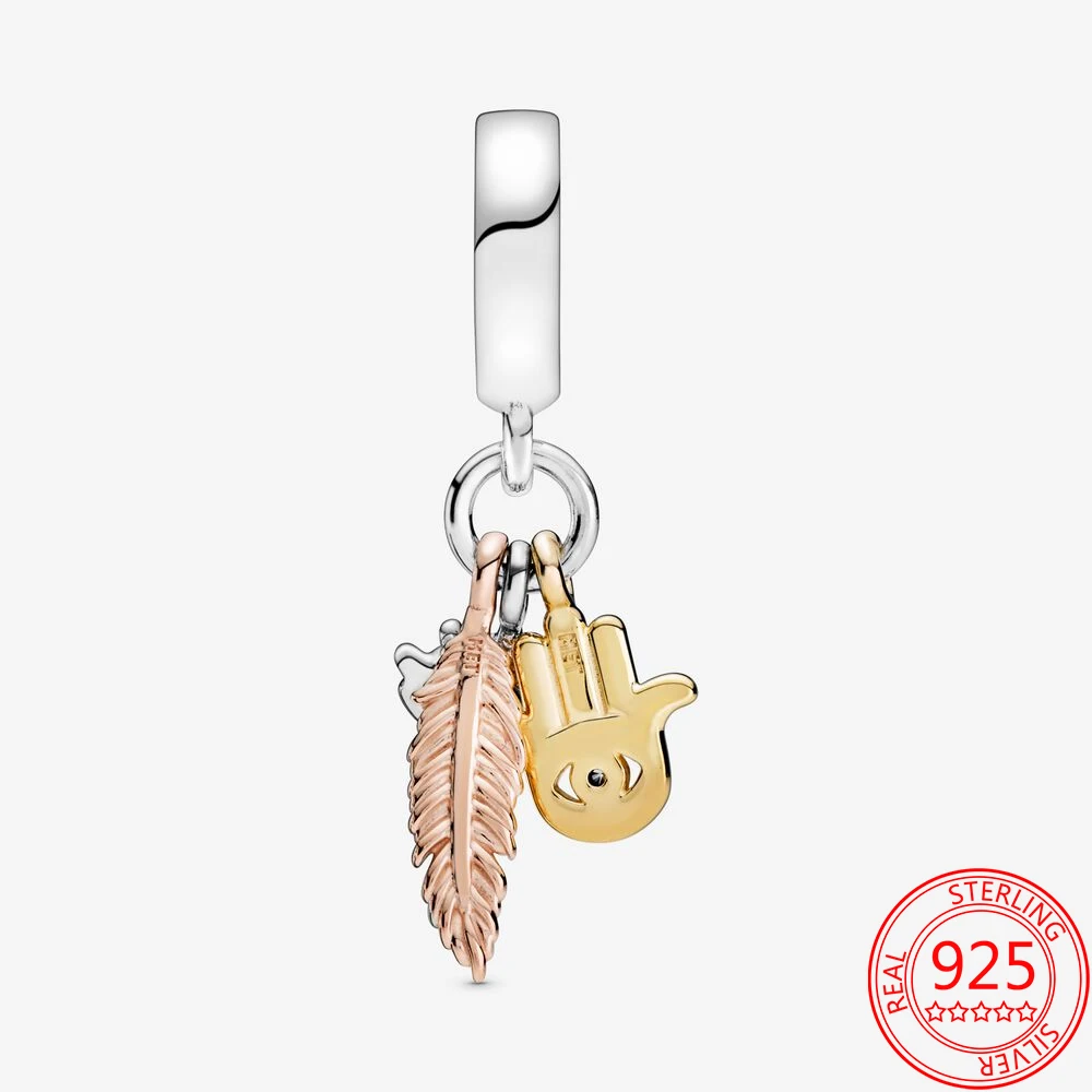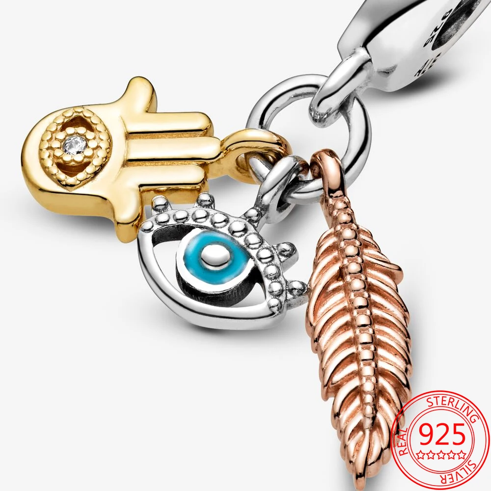 Высококачественная искусственная Серебристая подвеска на удачу, невидимый глаз и перо на удачу, подходит для оригинального браслета Pandora 3 мм