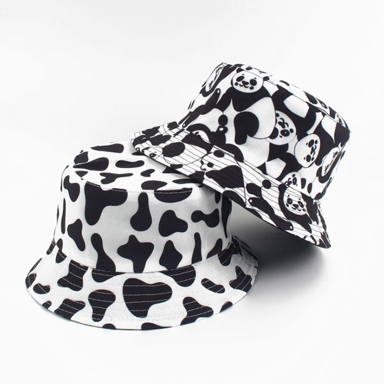 Панама шапки для женщин, Двусторонняя черная белая корова, панда, З...