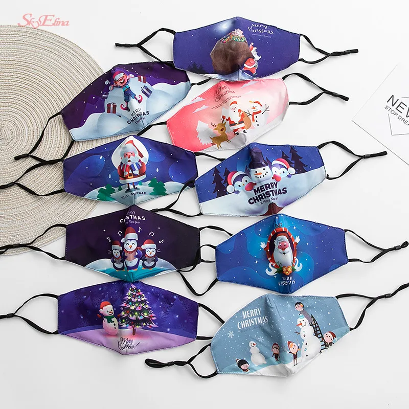 Быстрая доставка, моющаяся маска для рта на Рождество, респиратор с фильтром из вискозы и хлопка, маски против пыли, многоразовые маски для взрослых