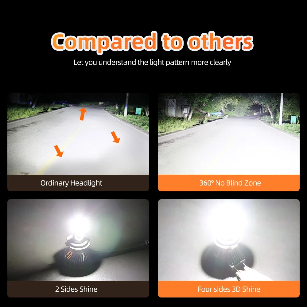 4-сторонняя светодиодная фара H7 H8 H9 H11 9005 HB3 9006 HB4, автом...