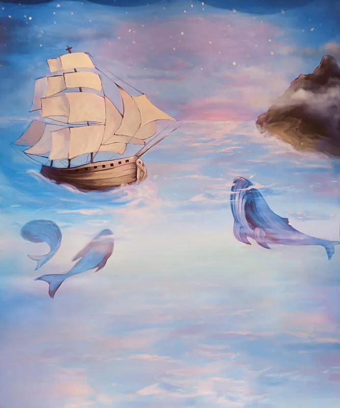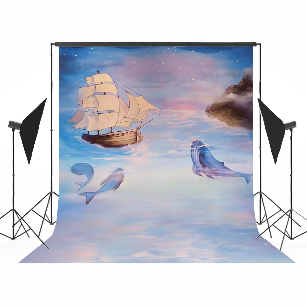 Фон для фотосъемки новорожденных с изображением сказочного Кита для 1-го дня рождения