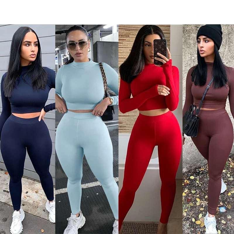 Комплект Спортивный женский из двух предметов, Топ с длинным рукавом и леггинсы