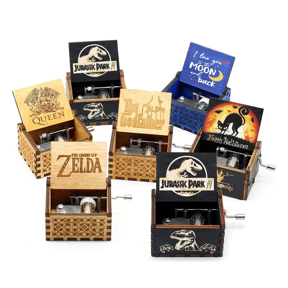 Музыкальная Шкатулка из дерева с ручкой и резьбой по анонимности, Музыкальная Шкатулка для парка Юрского периода, Музыкальная Шкатулка Digimon 50 стилей, музыкальный подарок для детей