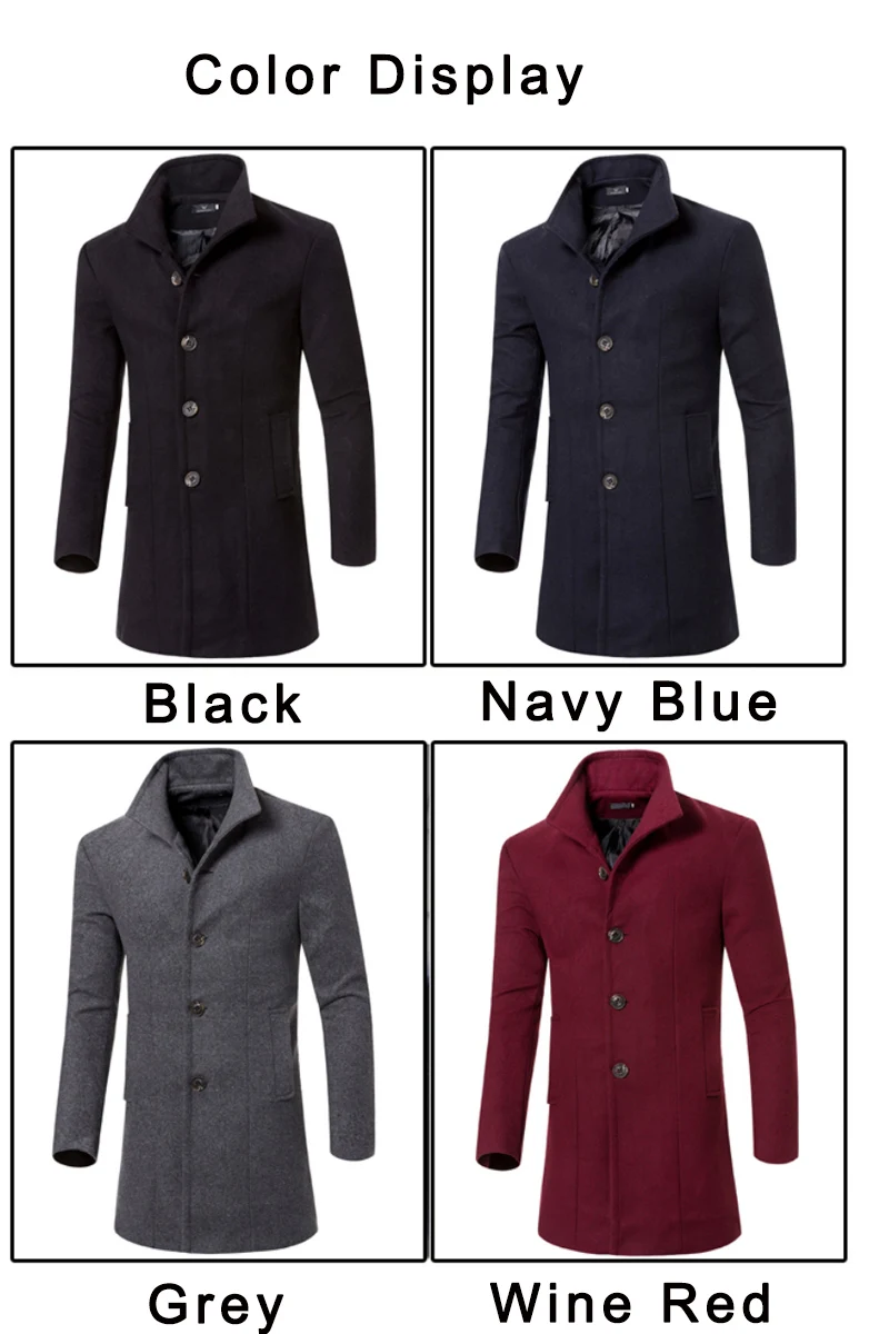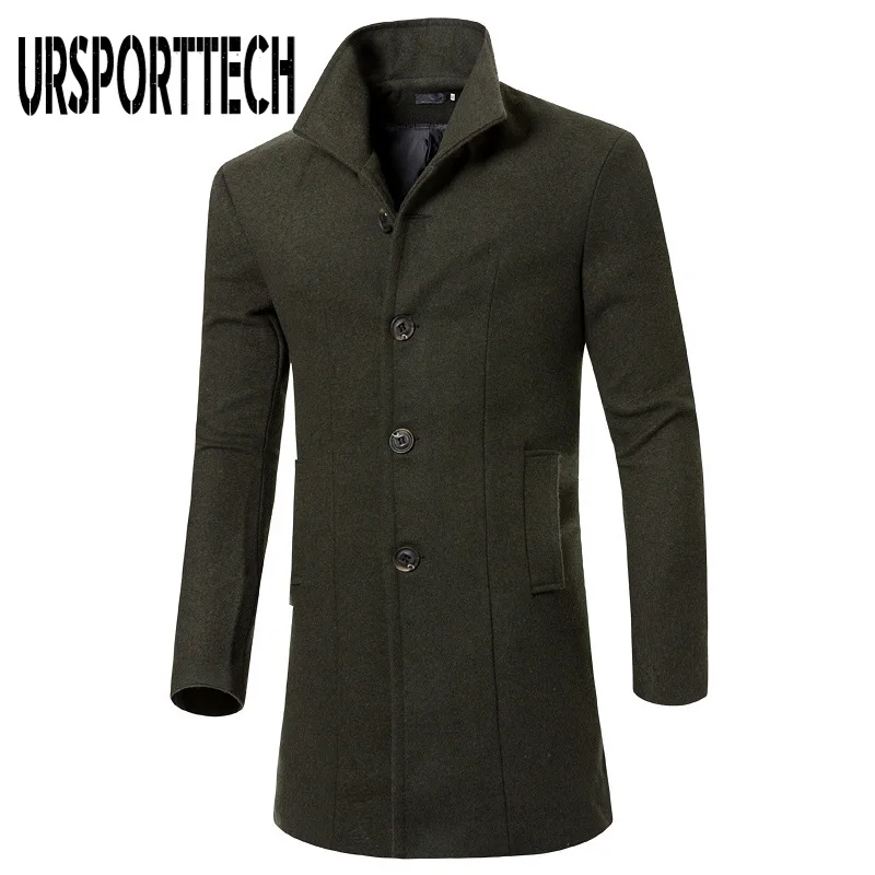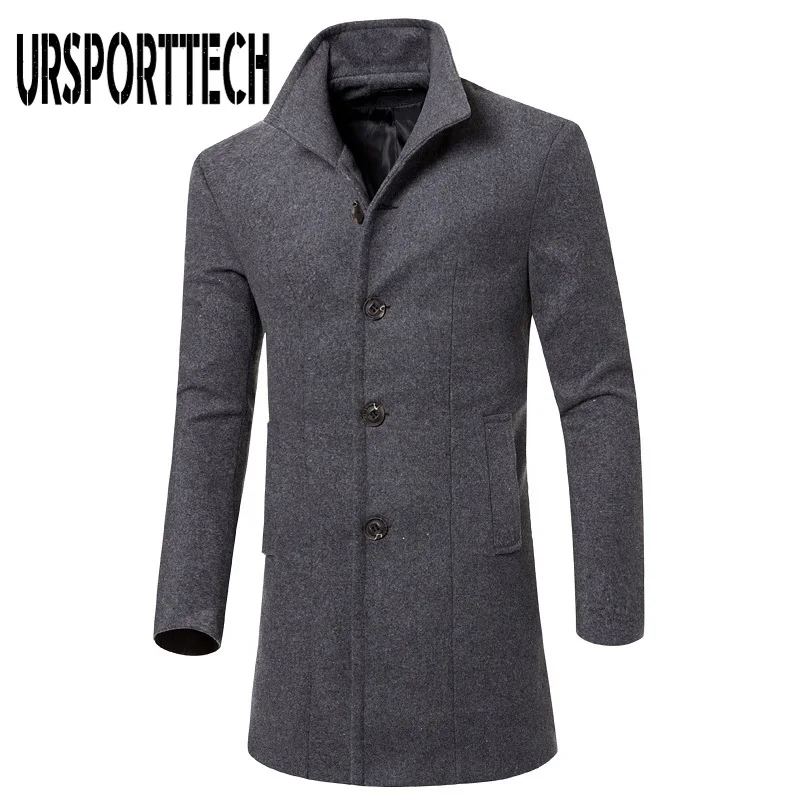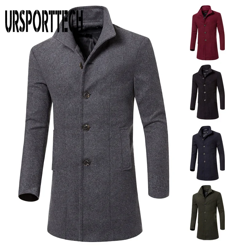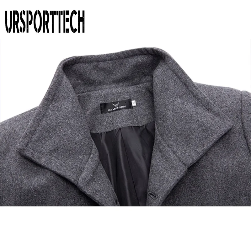 Пальто мужское шерстяное средней длины, модный Тренч в Корейском стиле, шерстяная ветровка, однотонные куртки, пальто, Осень-зима