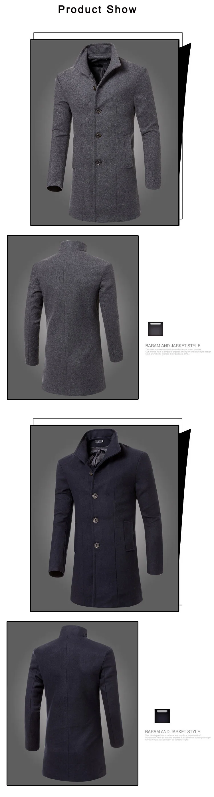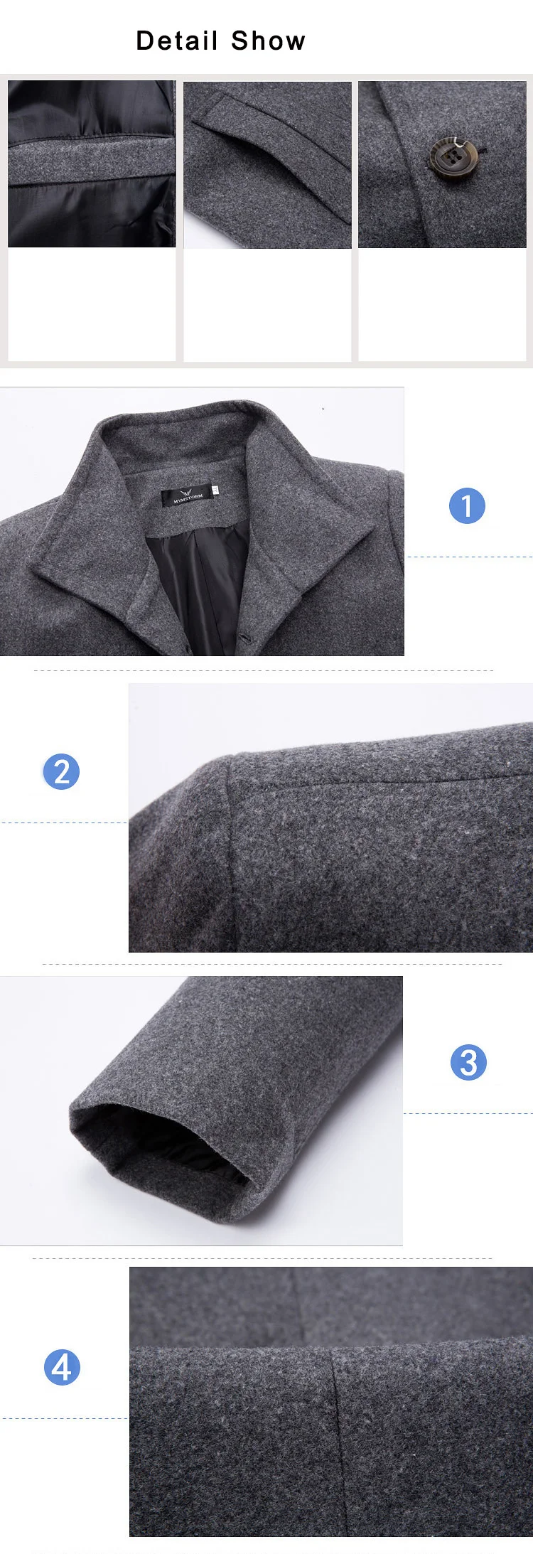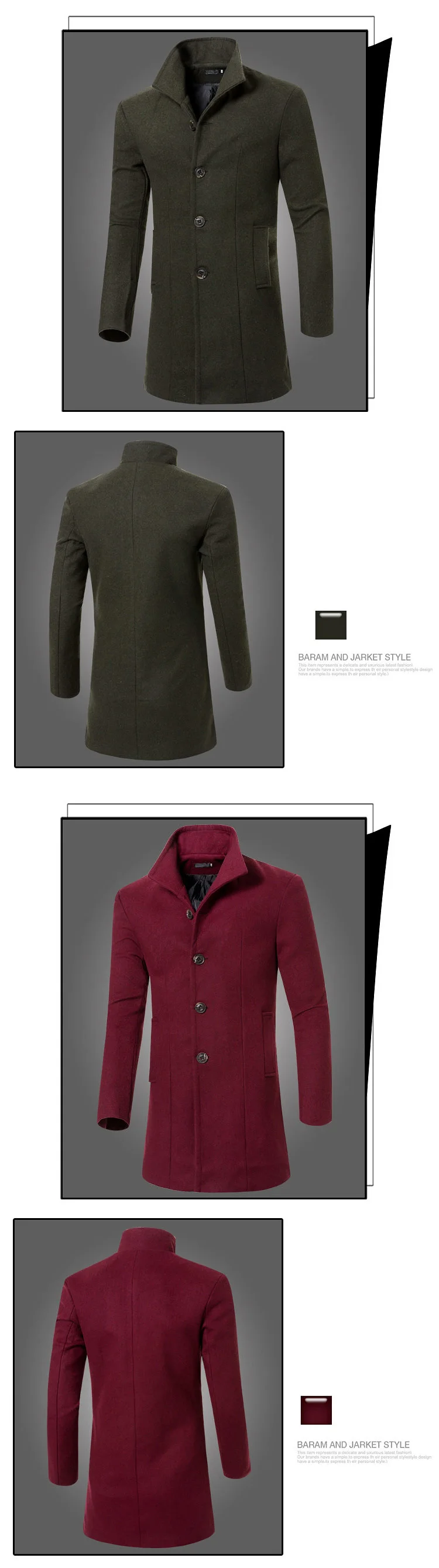 Пальто мужское шерстяное средней длины, модный Тренч в Корейском стиле, шерстяная ветровка, однотонные куртки, пальто, Осень-зима