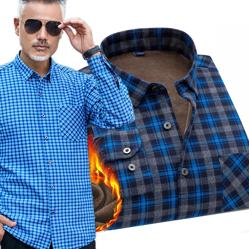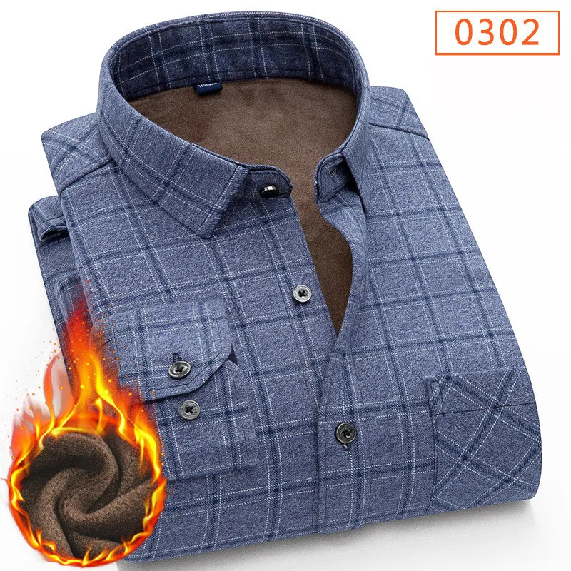 2020 Мужская бархатная теплая рубашка с длинным рукавом, удобная, приятная для кожи, клетчатая рубашка размера плюс, повседневные топы среднего и пожилого возраста