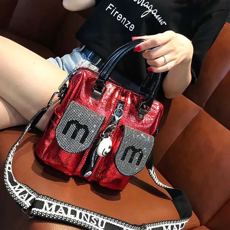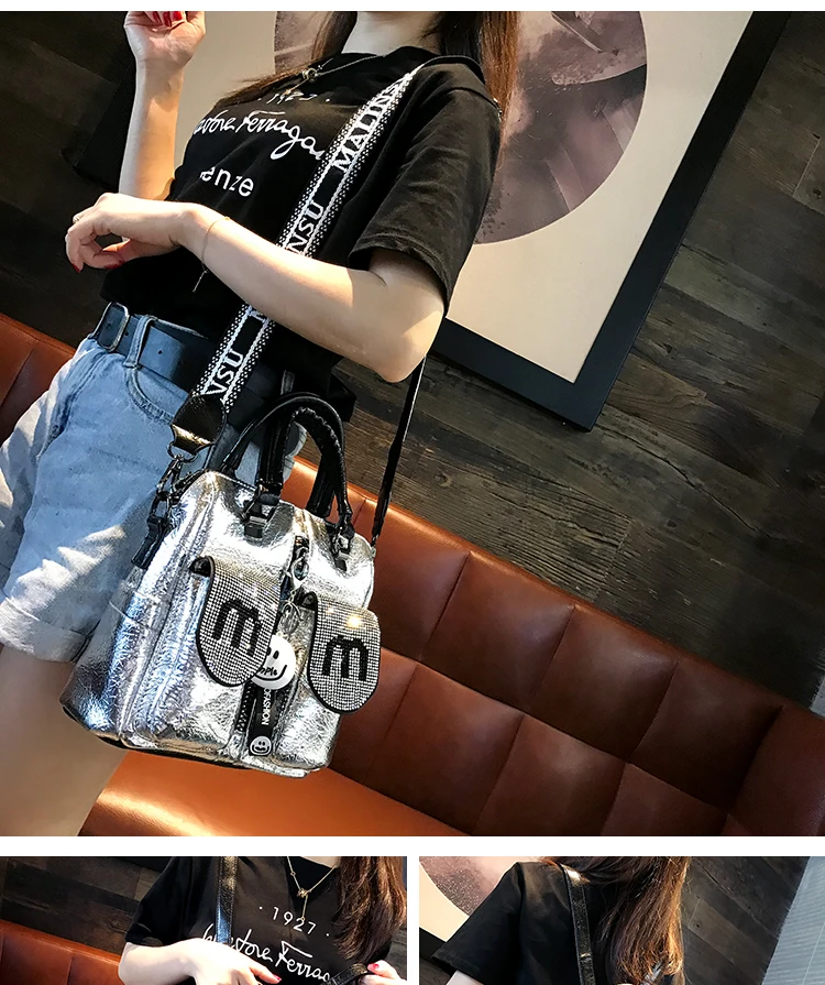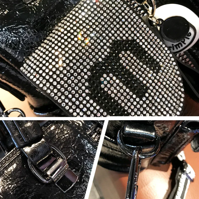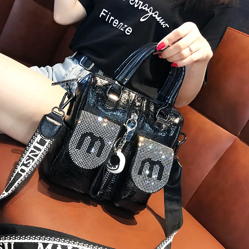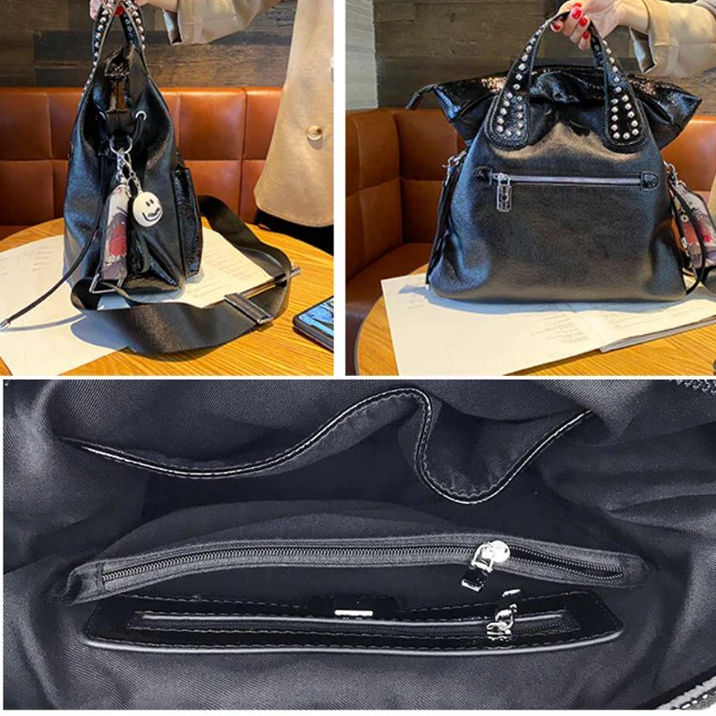 Женская наплечная сумка, черная сумка-тоут с заклепками и надписью, для путешествий