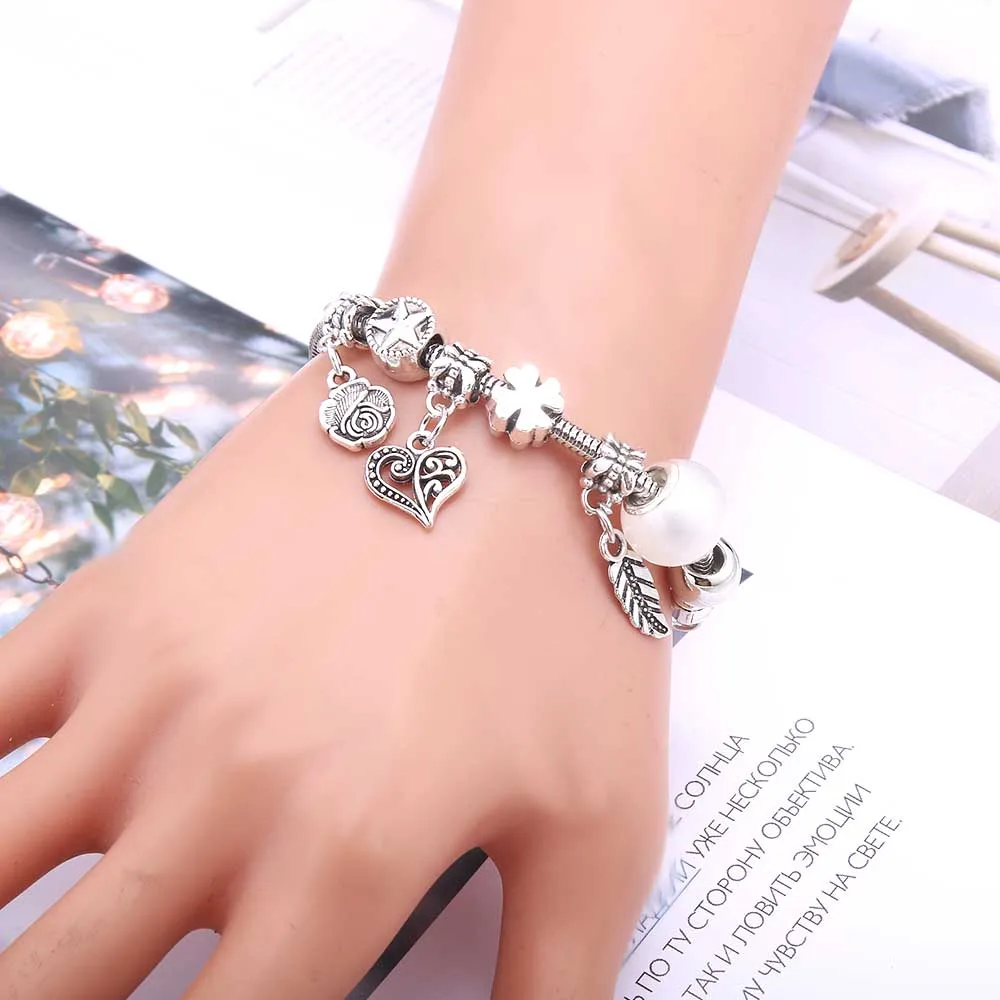 Дропшиппинг Роза лягушка лист стеклянные бусины фирменные браслеты для женщин DIY бусы браслеты и браслеты Шарм браслет ювелирные изделия подарок