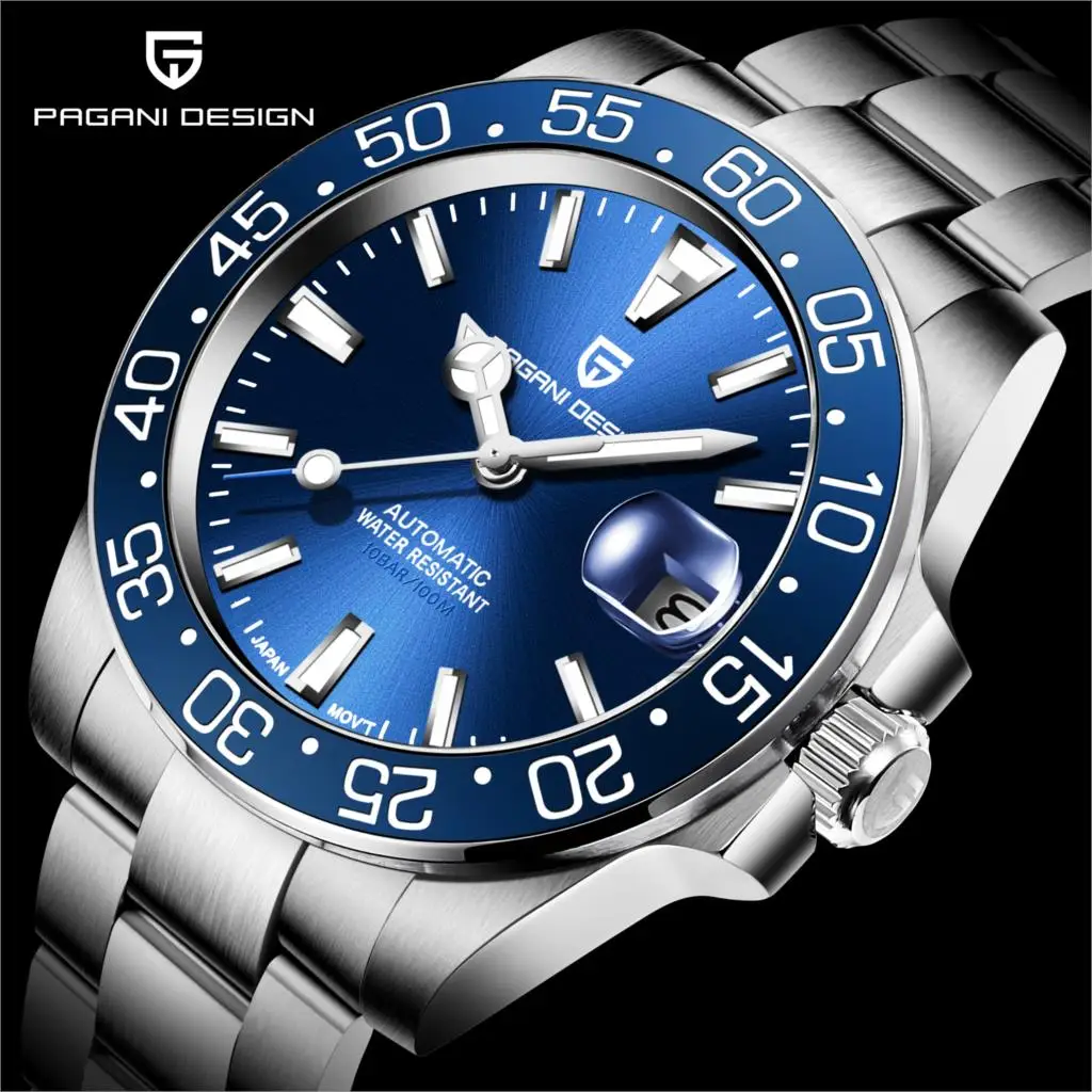 Часы наручные PAGANI Мужские автоматические, брендовые механические с сапфировым стеклом 40 мм, нержавеющая сталь, 2020
