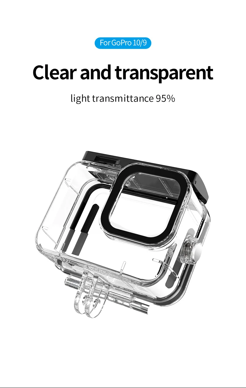 1. Специально разработанный для Gopro Hero 9/10 черный подводный водонепроницаемый корпус Чехол