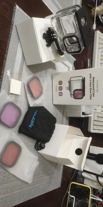 Отличный бокс, качественно сделан, надеюсь хватит надолго. Встречал в интернете фотографии совершенно другого бокса Telesin, может быть это обновленная версия. Фильтры достаточно странных цветов, но надо тестировать под водой. Продавец не положил вкладыши от запотевания, пришлось открывать диспут и возвращать деньги.