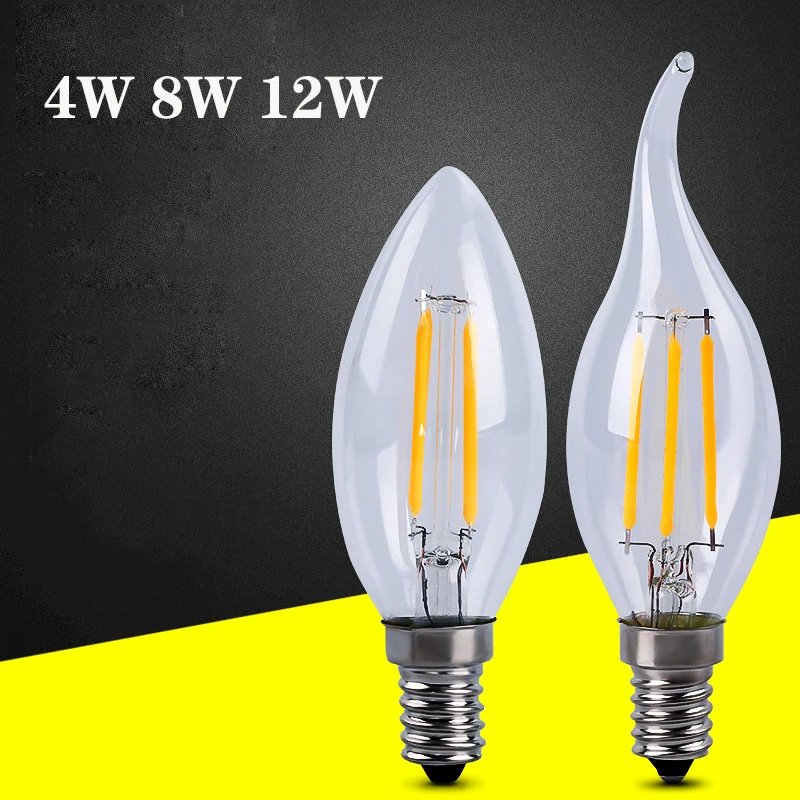 10 шт.партия, энергосберегающие светодиодсветодиодный лампы накаливания, 4 Вт, 8 Вт, 12 Вт, E14, 220 В переменного тока, 240 в, C35, C35L