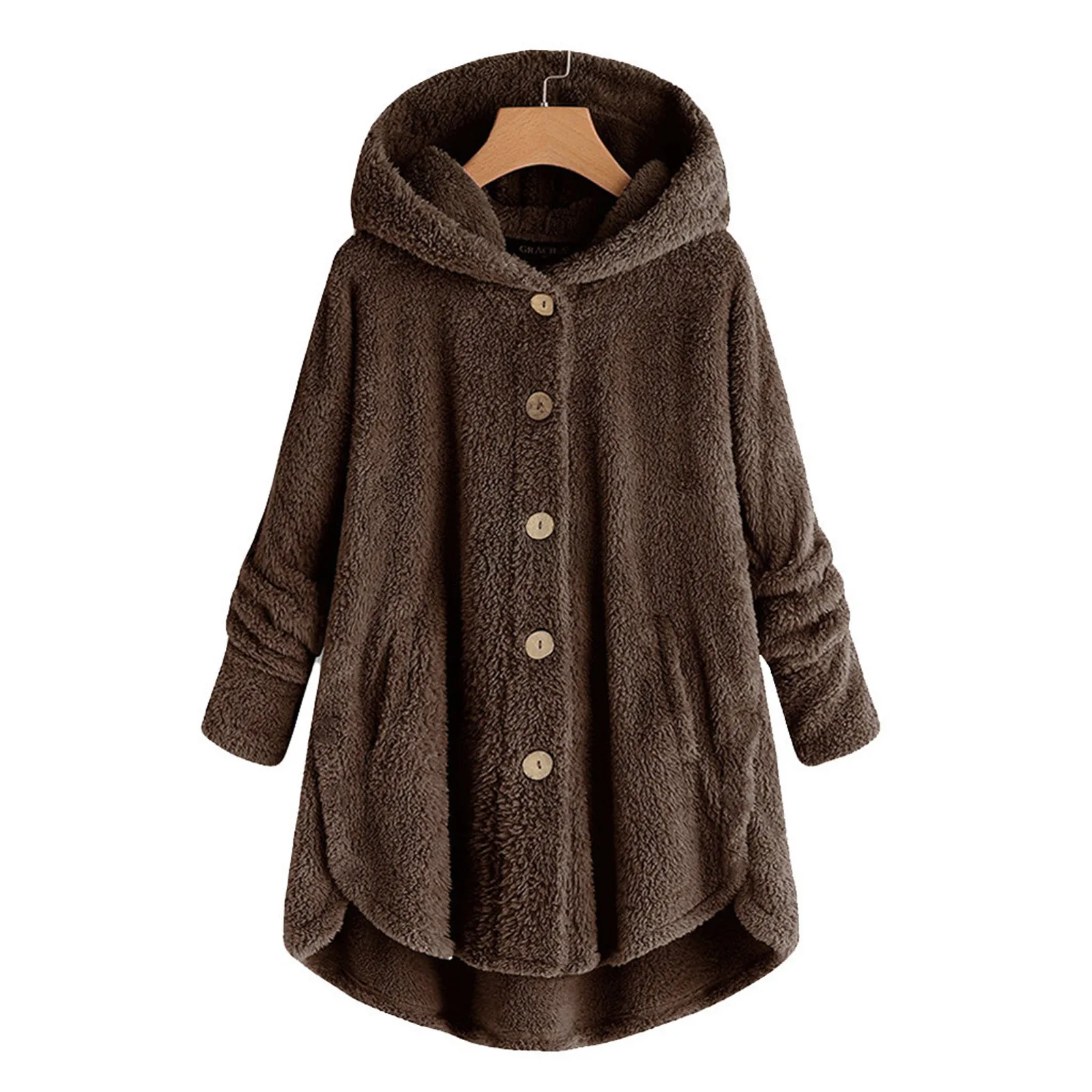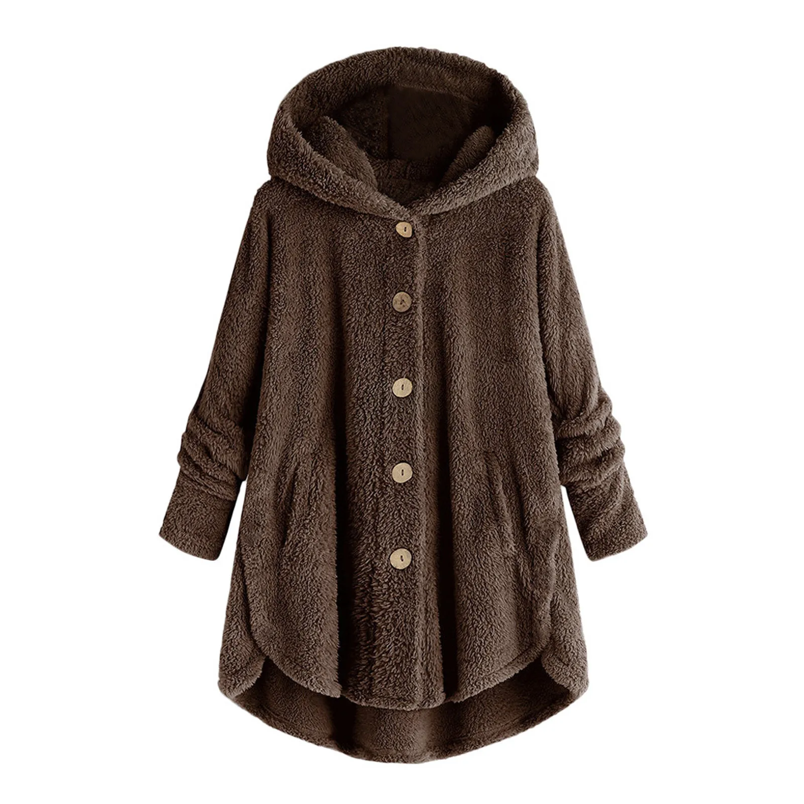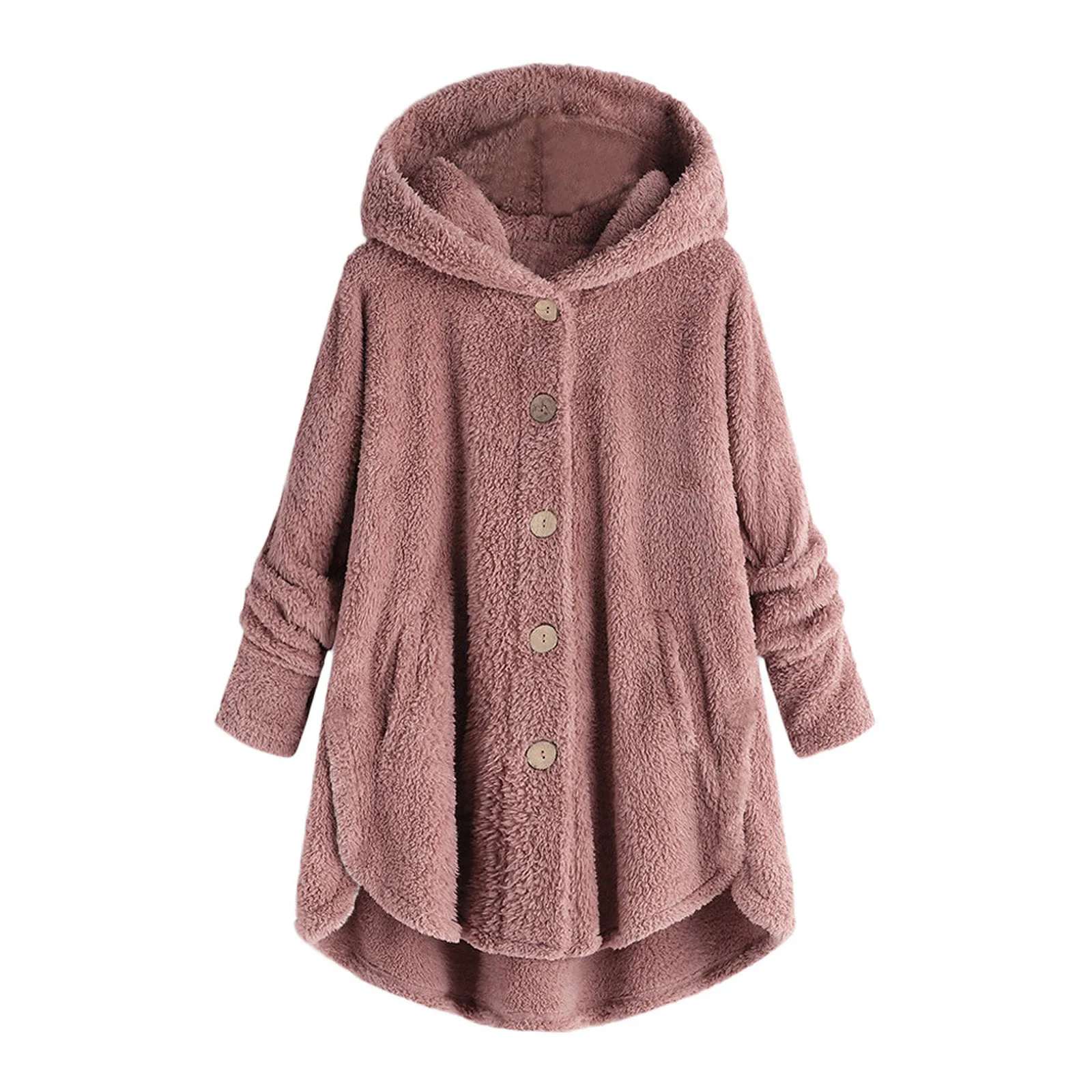 Женский плюшевый топ на пуговицах, Свободный кардиган с капюшоном, шерстяное пальто, зимняя куртка, большие размеры