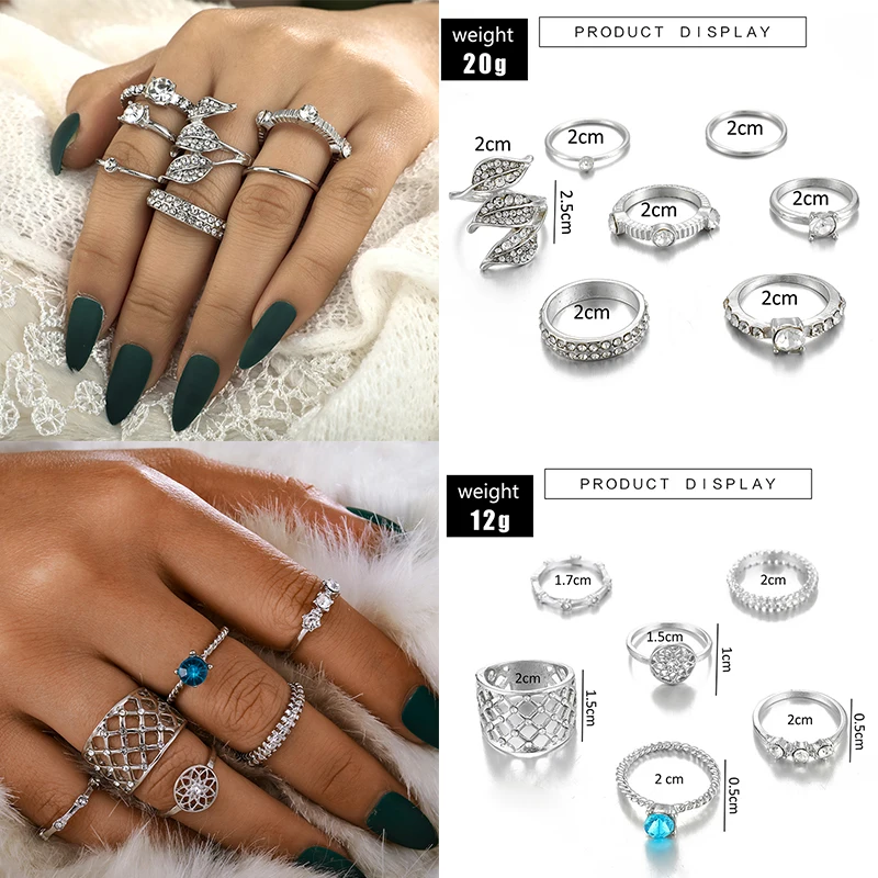 Кольцо Tocona 8 шт.компл. модные кольца золотого и серебряного цвет...