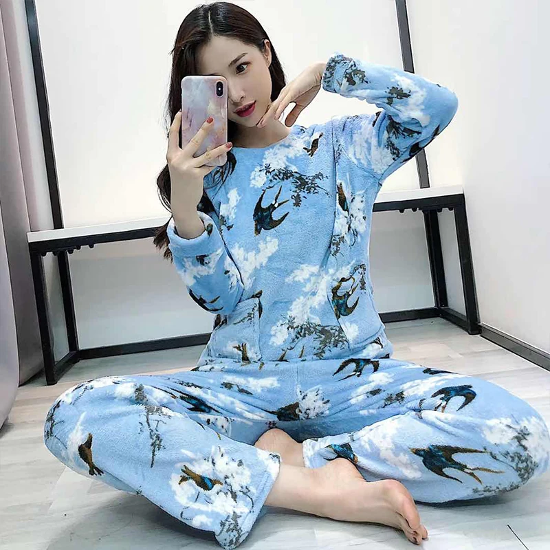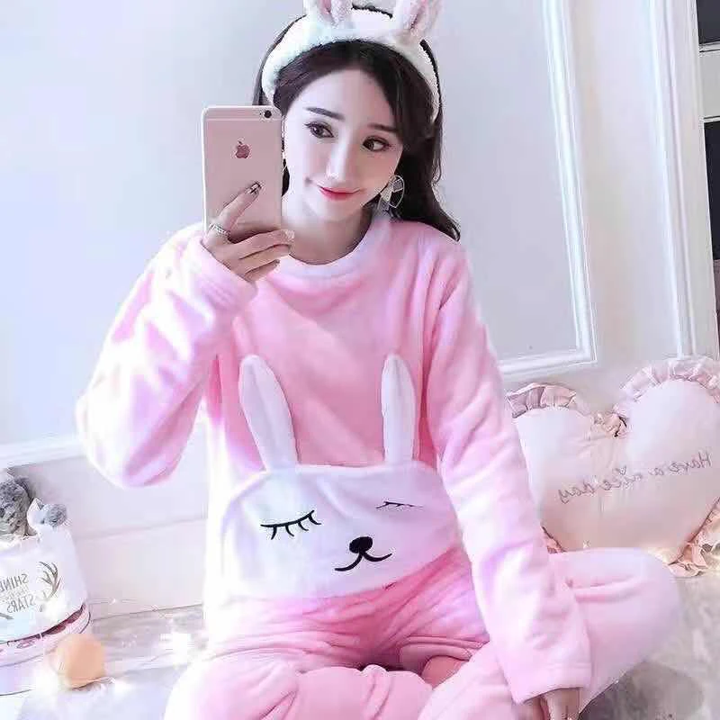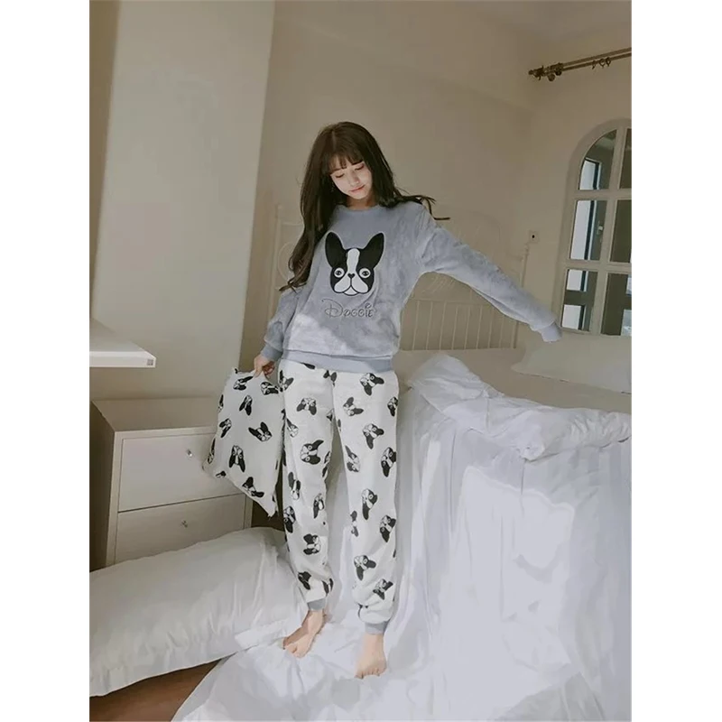 Новинка зимняя фланелевая теплая Пижама корейский кавайный мультяшный пижамный комплект модная Пижама женская одежда для отдыха домашняя пижама женская одежда для сна