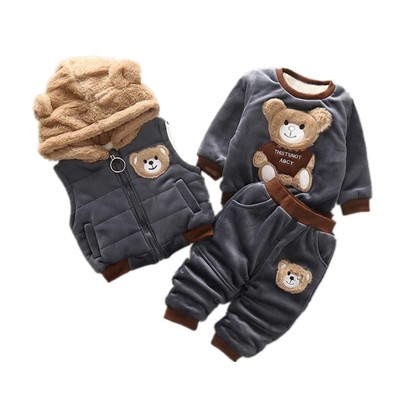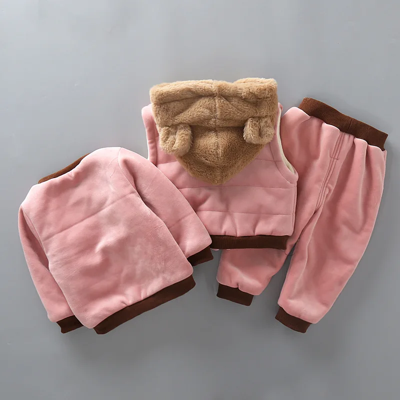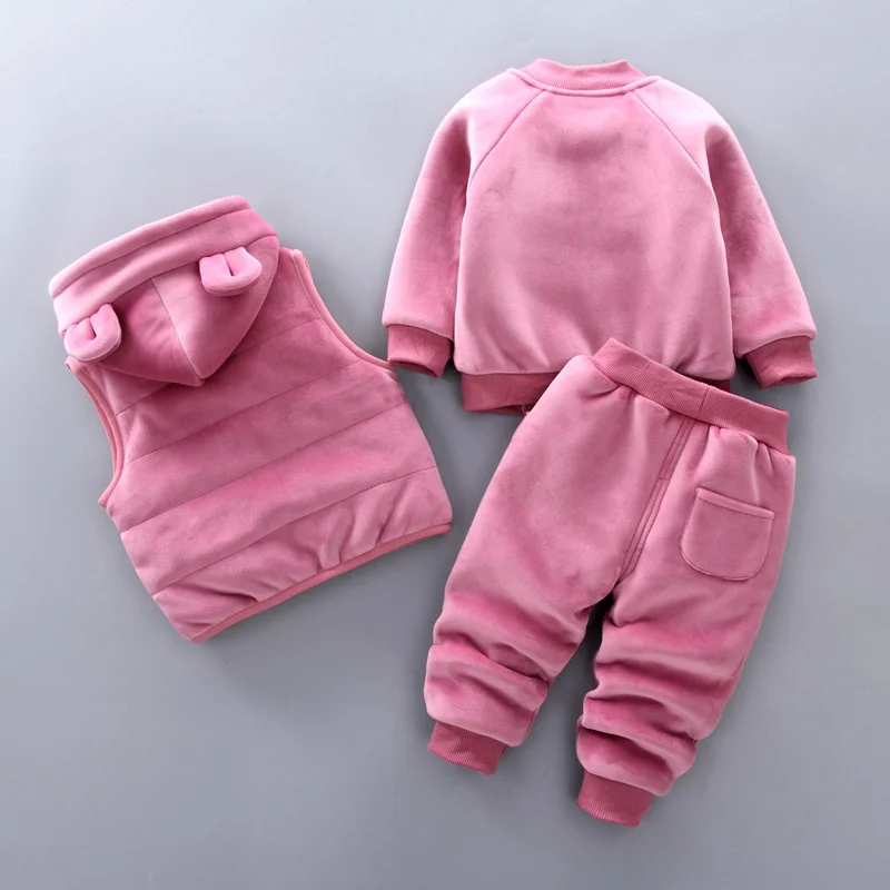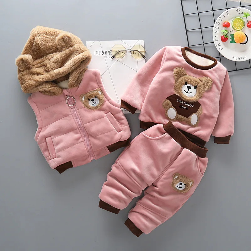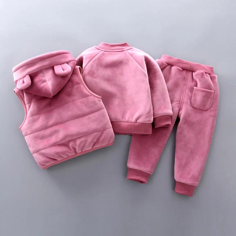 Новая зимняя одежда для маленьких девочек, костюм детский утепленный жилет с капюшоном для мальчиков футболка и штаны 3 шт.компл., повседневный костюм для малышей детские спортивные костюмы