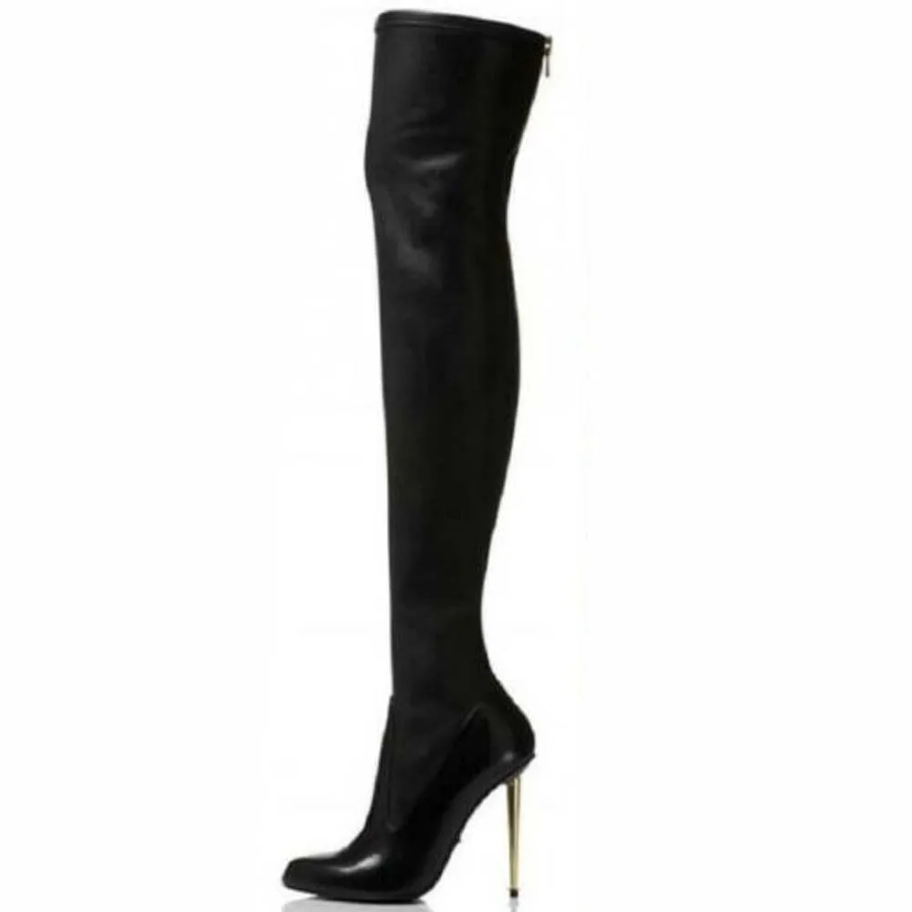 Сапоги женские на тонком высоком каблуке, с острым носком, большие вечерние 34-43