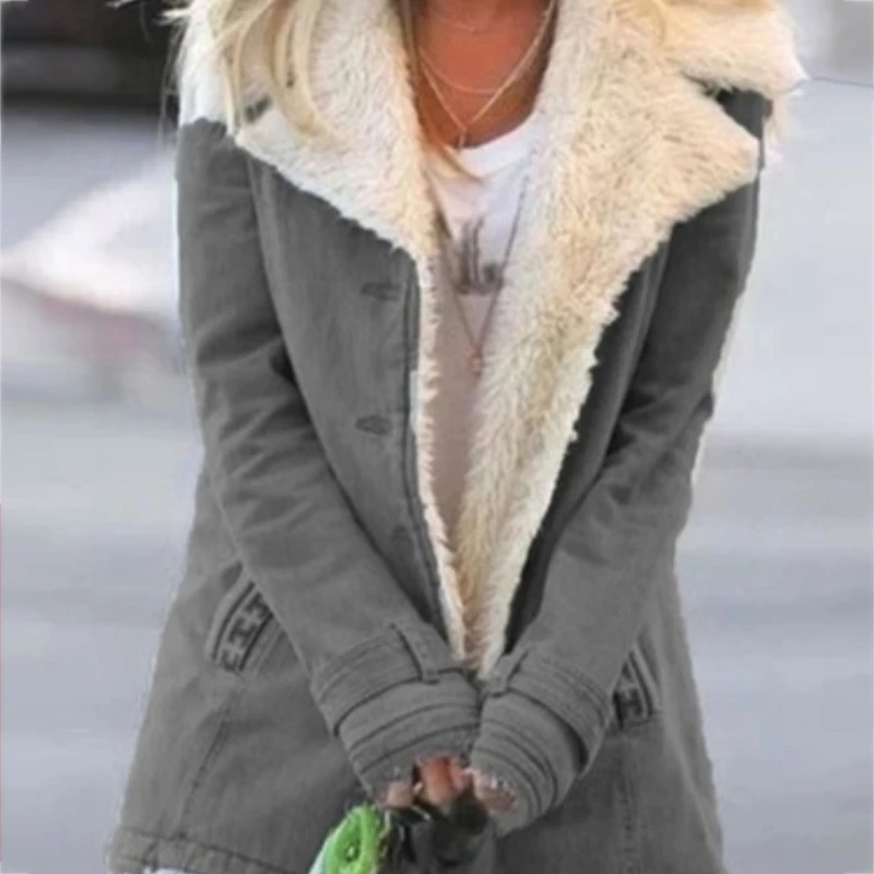 Плюшевое зимнее женское повседневное пальто с отложным воротником, однотонное пальто с карманами, уличная теплая верхняя одежда