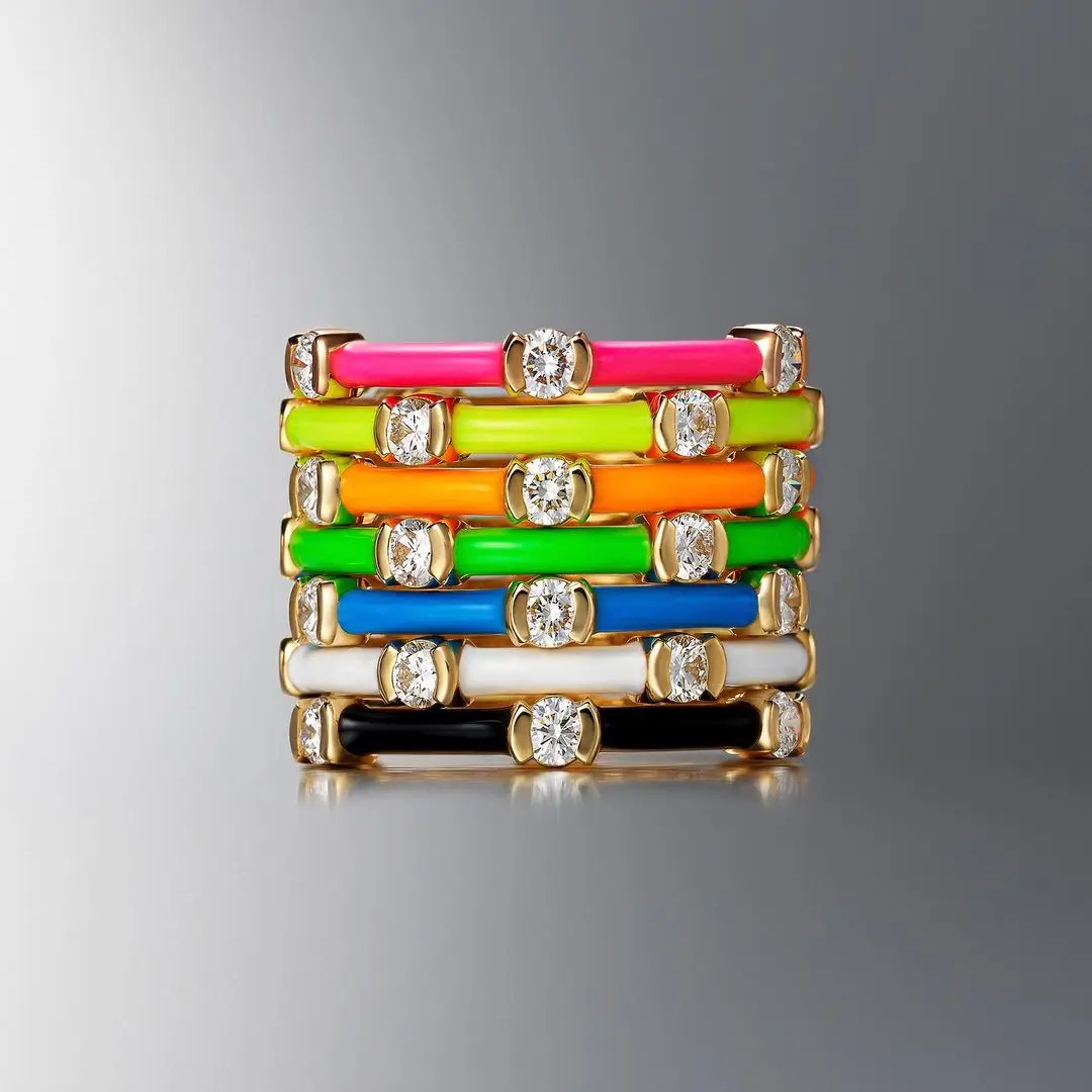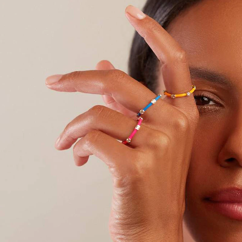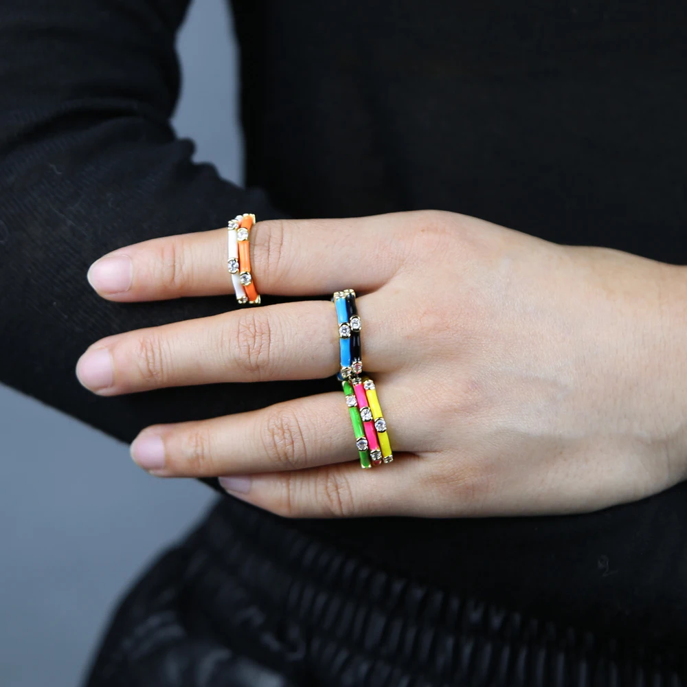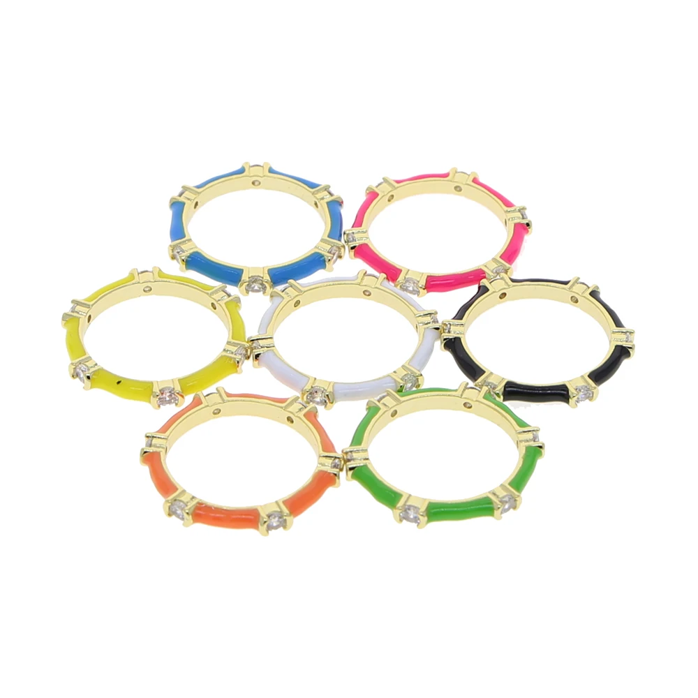 Набор женских лент золотого цвета, 7 неоновых эмалевых прозрачных кубических Цирконий CZ, кольцо на палец вечности