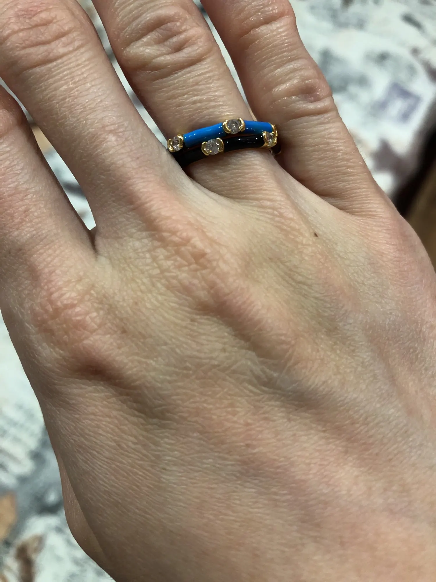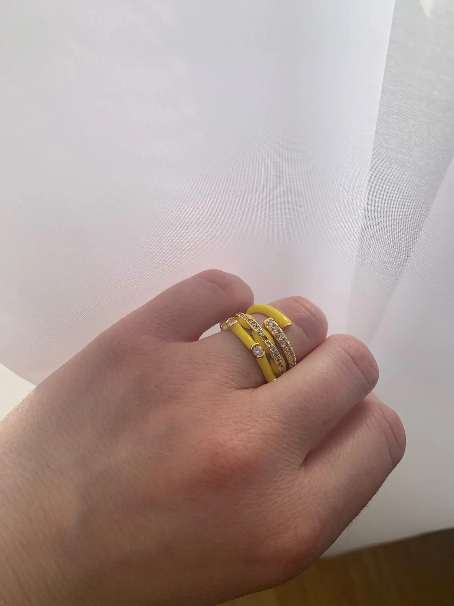 очень красивые кольца.эмаль нанесен аккуратно.камни на месте аккуратно.смотрятся на пальцах красиво очень.в очень хорошей твердой упаковке прислали поэтому все в отличном состоянии.продавец тоже ответил быстро и выполнил мою просьбу.советую.