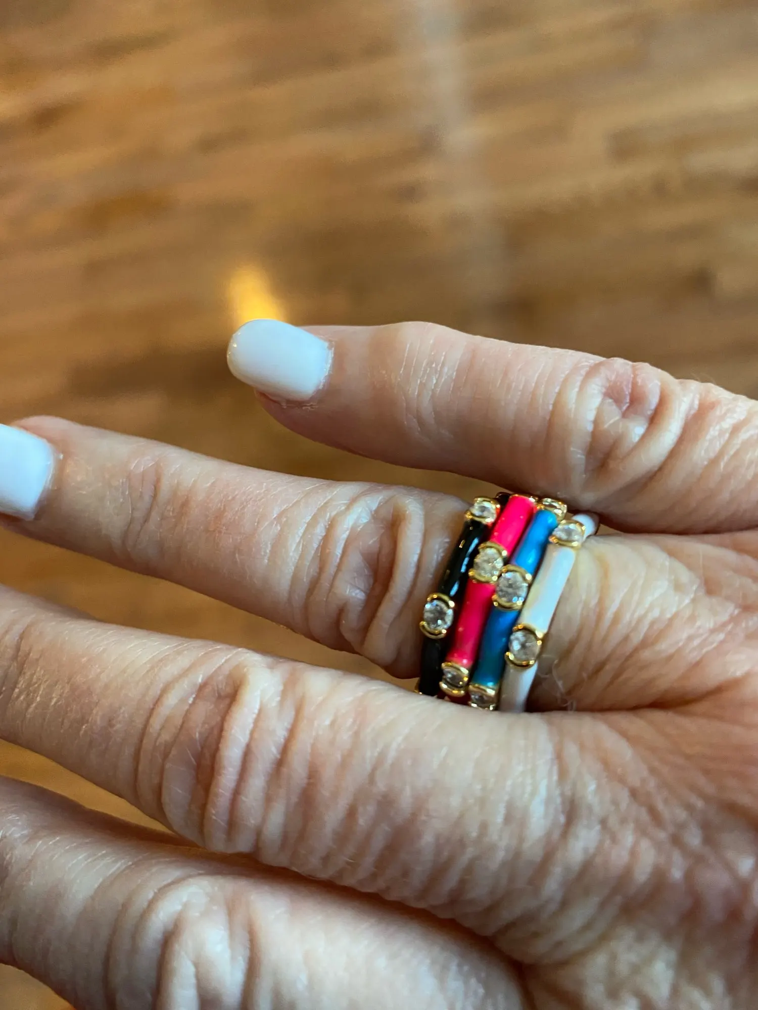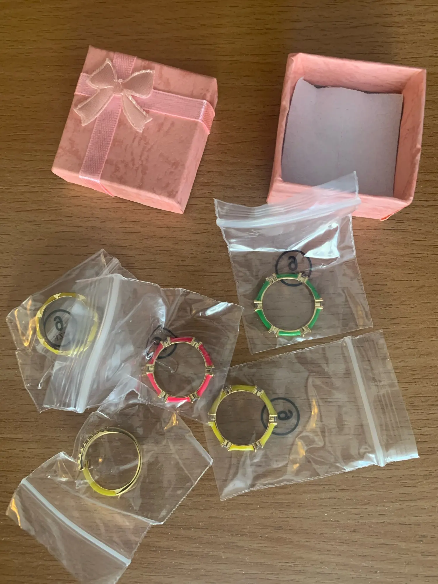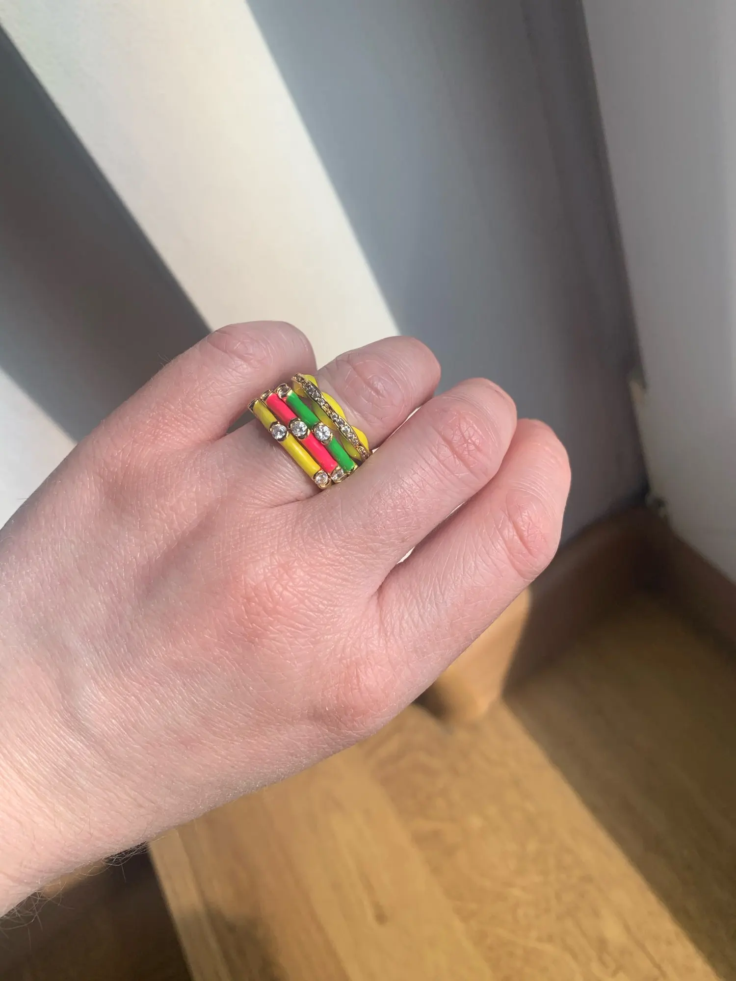 Заказала 2 колечка, зелёное и розовое. Классные, ношу и вместе и раздельно. От воды мыла не портятся