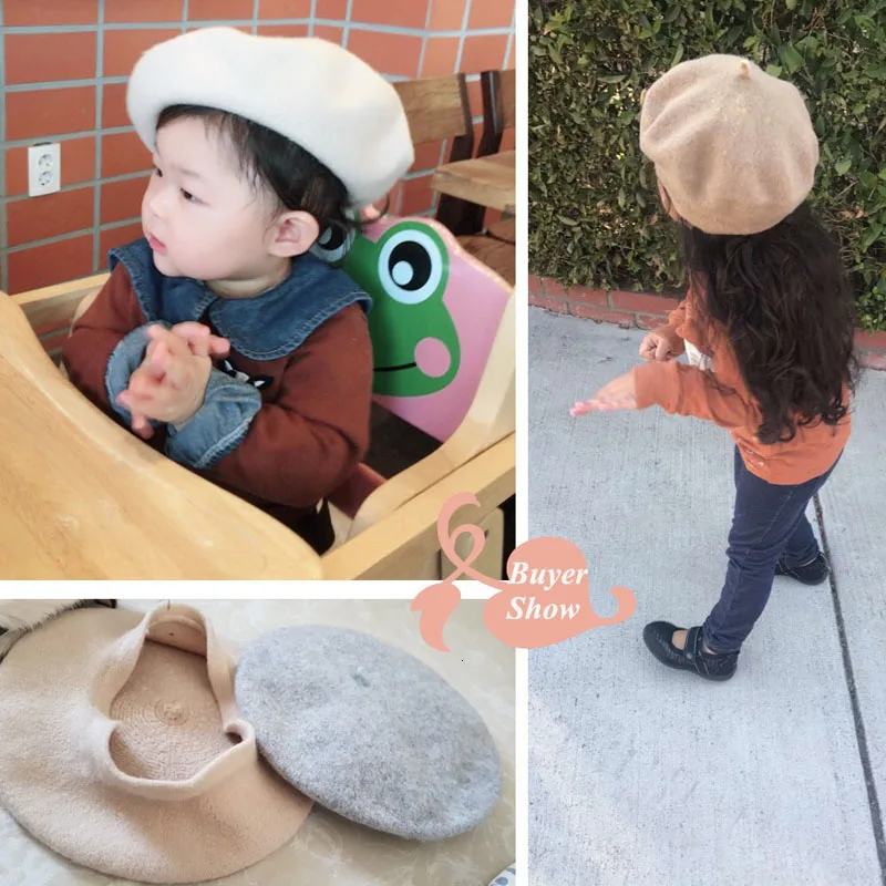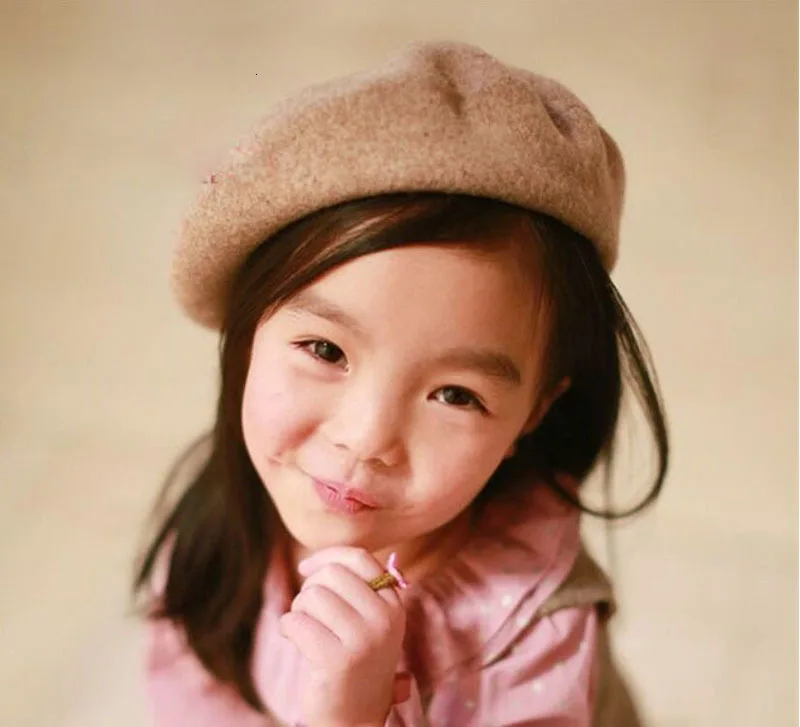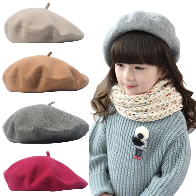 Новинка, детская шапка, зимняя, осенняя, теплая, шерстяная, плюшевая, милая, однотонная, модная шапка-берет карамельных цветов, Детская Шапка-бини для девочек