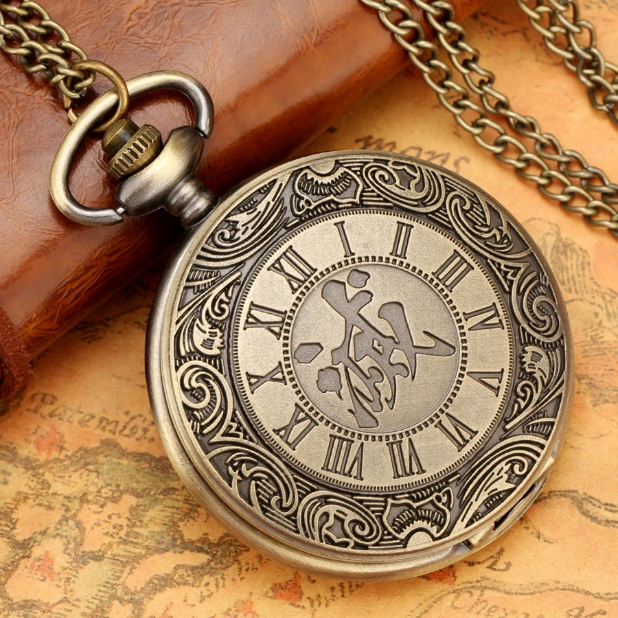 Антикварные Бронзовые кварцевые карманные часы с китайским рисунком, ожерелье, часы, свитер, цепочка, художественная коллекция, сувенирные подарки