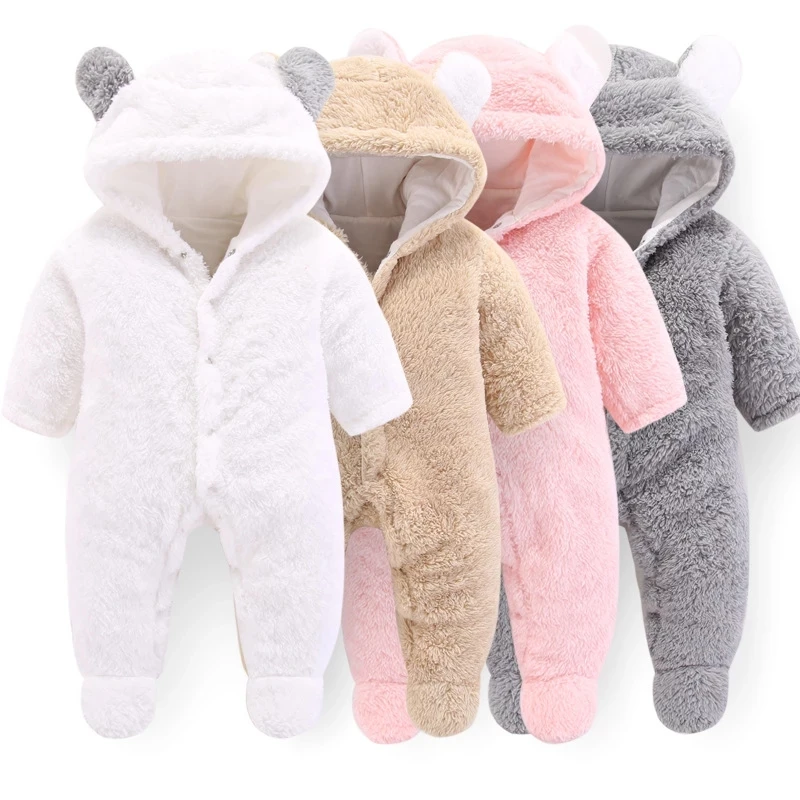 Осенне-зимняя одежда для младенцев, плотный пуховый Детский комбинезон для маленьких девочек, комбинезон для новорожденных, Теплый Плюшевый комбинезон