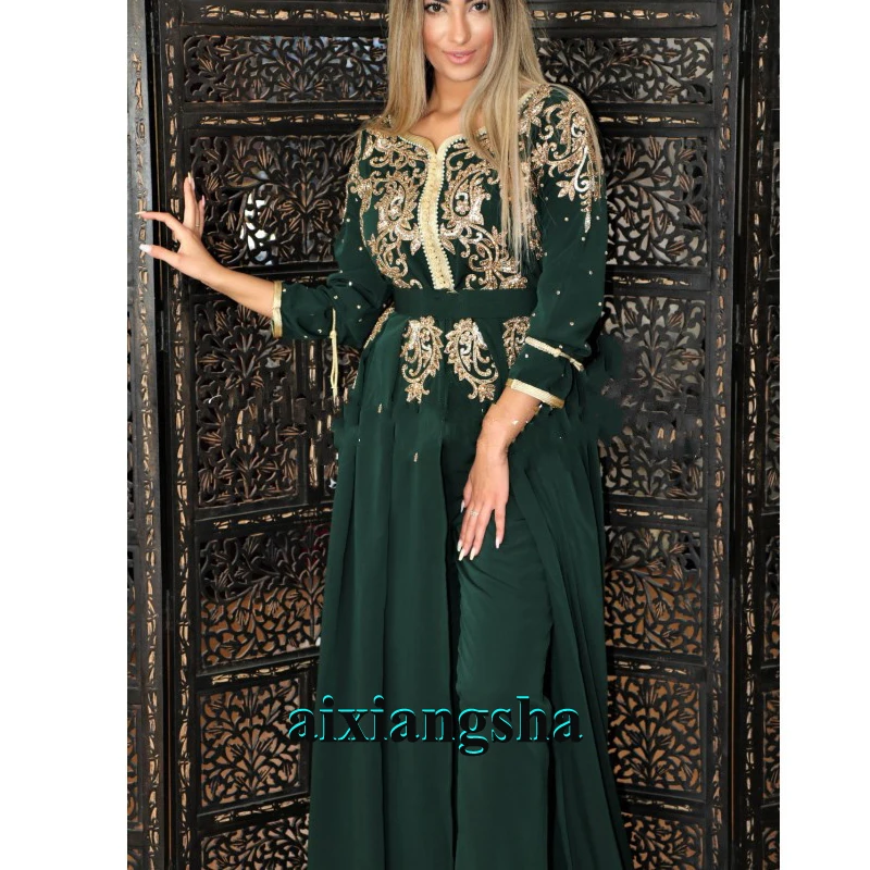 Aixiangsha зеленый марокканский кафтан вечернее платье, платье с расширенным съемным подолом, пояс с золотистой отделкой платье знаменитости De Soiree вечерние платья