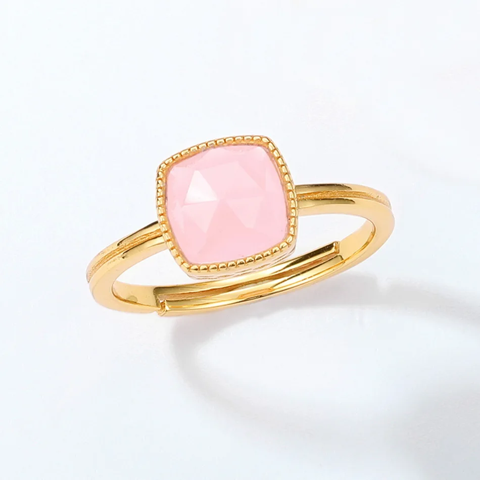 ALLNOEL однотонные 925 кольцо стерлинговоe серебряное для Для женщин синтетические розового кварца Регулируемый Настоящее позолоченное квадратное, хорошее ювелирное изделие, Новое поступление, подарок при покупке!
