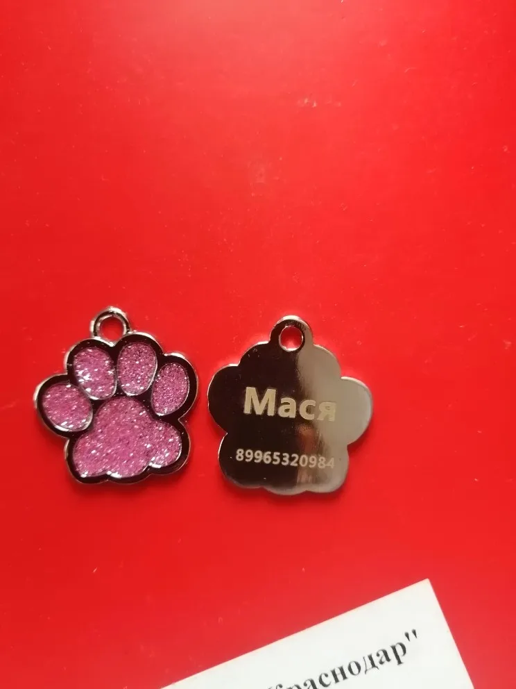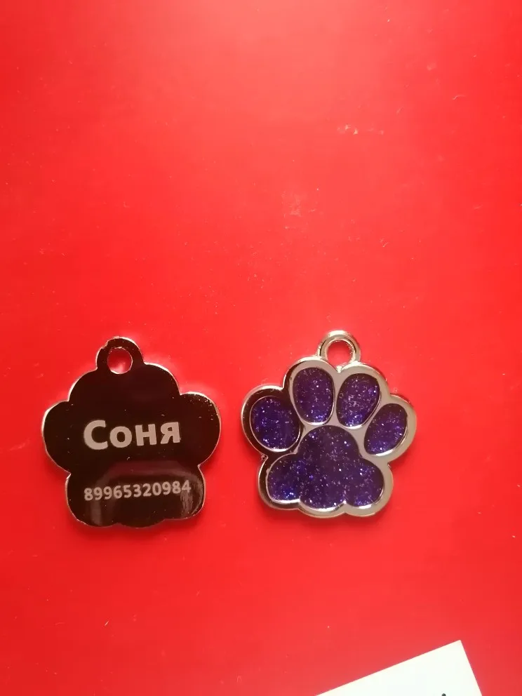 Стиль: идентификационные бирки для домашних животныхФорма: блестящая лапаЦвет: серебристый/золотой/розовое золото/черный/зеленый/фиолетовый...Индивидуальный текст:Имя + номер телефона + адресРазмер: как показано на картинкеПосылка включает в себя: 1 * Pet ID