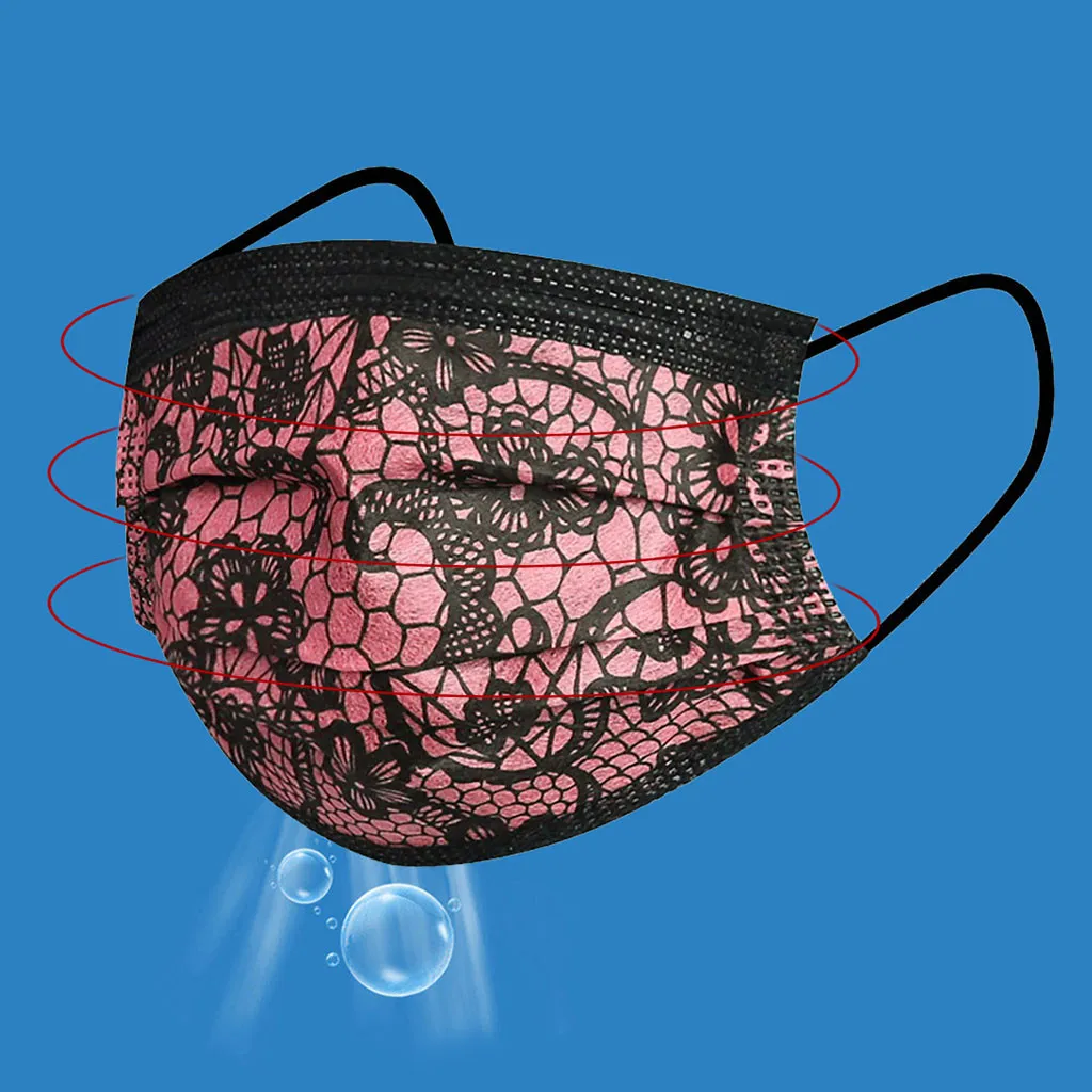 Маска кружевная одноразовая для взрослых, защитная дышащая 3-слойна...