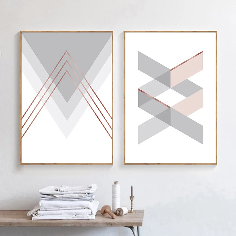 Розово-серый стрелка геометрические плакат абстрактного искусства холст со скандинавскими мотивами с простотой настенная живопись картина для Гостиная украшения