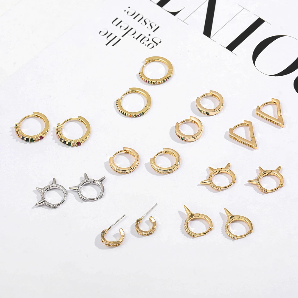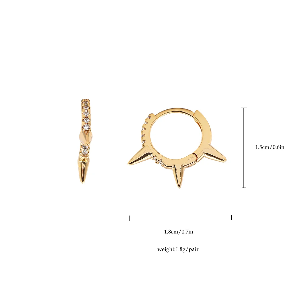 Женские готические серьги-кольца с заклепками, тонкие маленькие серьги-кольца с фианитами под золото в стиле панк, Подарочная бижутерия