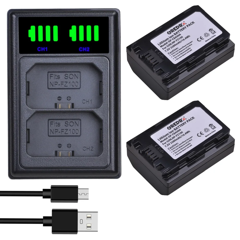 3x2280mAh NP-FZ100 NP FZ100 батарея + Type-C светодиодный зарядное устройство для Alpha a7 III, 7 III, a7R III, 7R III, ILCE-7RM3 I7M3 a9 ILCE-9, 9R