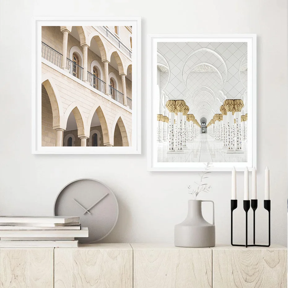 Красивая мечеть, белая и Золотая АРКА, марокканская Исламская Карти...