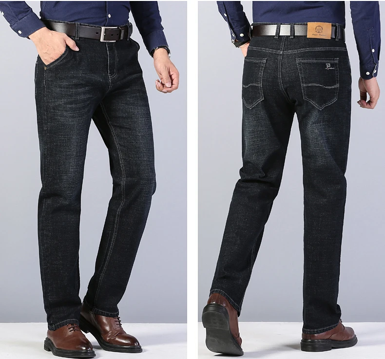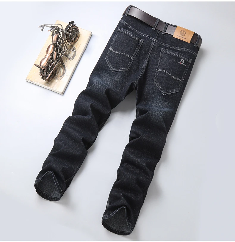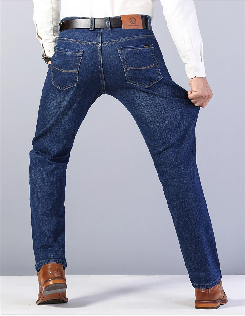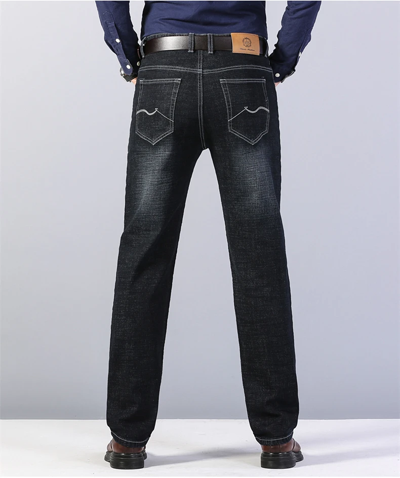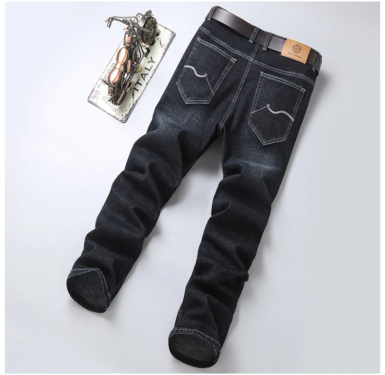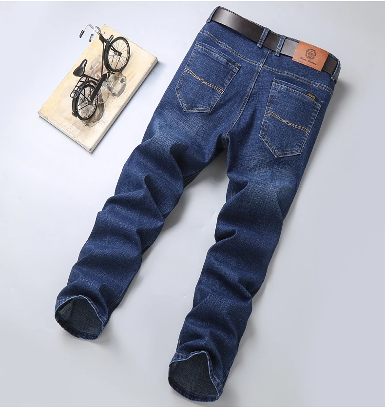 Высококачественные брендовые классические синие мужские плотные джинсы на все сезоны Новые повседневные Модные свободные джинсовые брюки однотонные Стрейчевые брюки