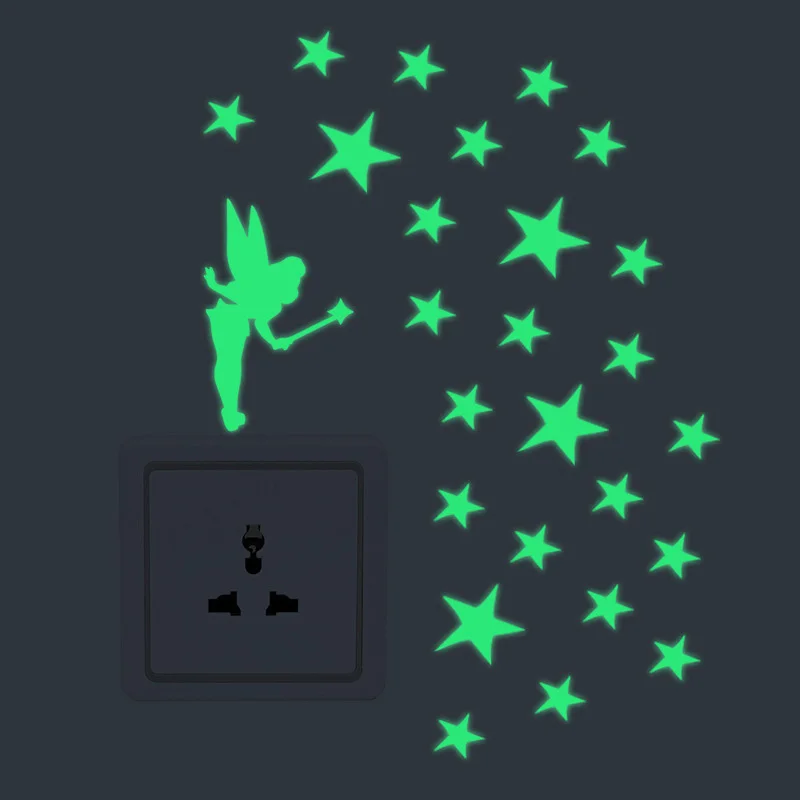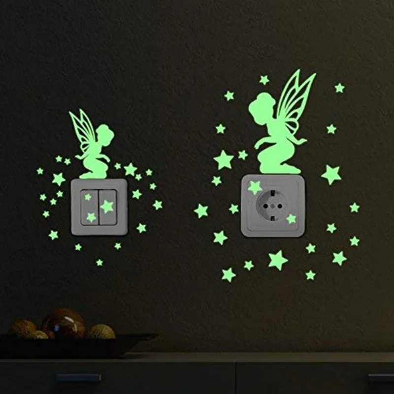 Светящийся Переключатель наклейка Мультяшные наклейки на стену светится в темноте домашний декор Детская комната декоративная наклейка на стену Кот Фея Луна Звезда