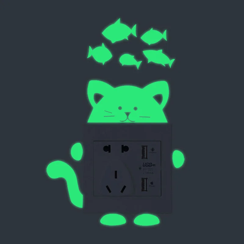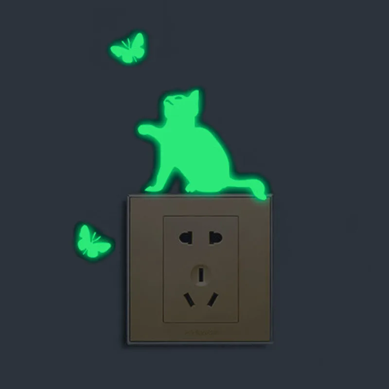 Световой мультяшный переключатель наклейки светится в темноте кошки...